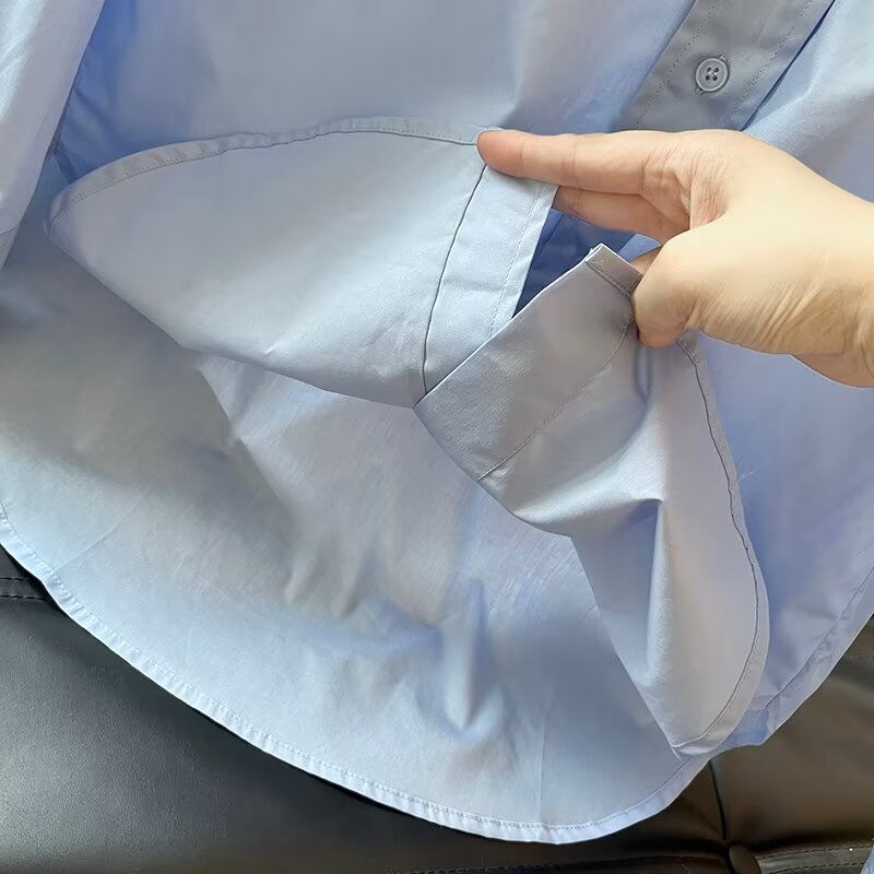 Women's new fashion loose basic style solid cotton long sleeved shirt