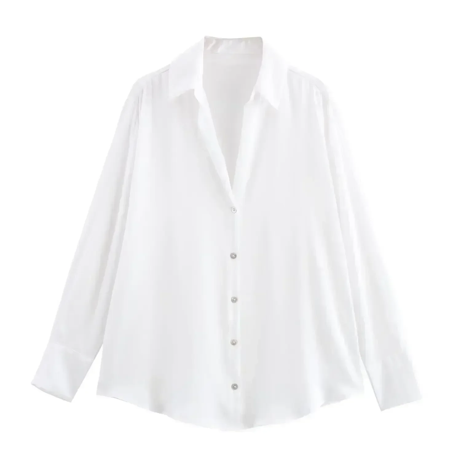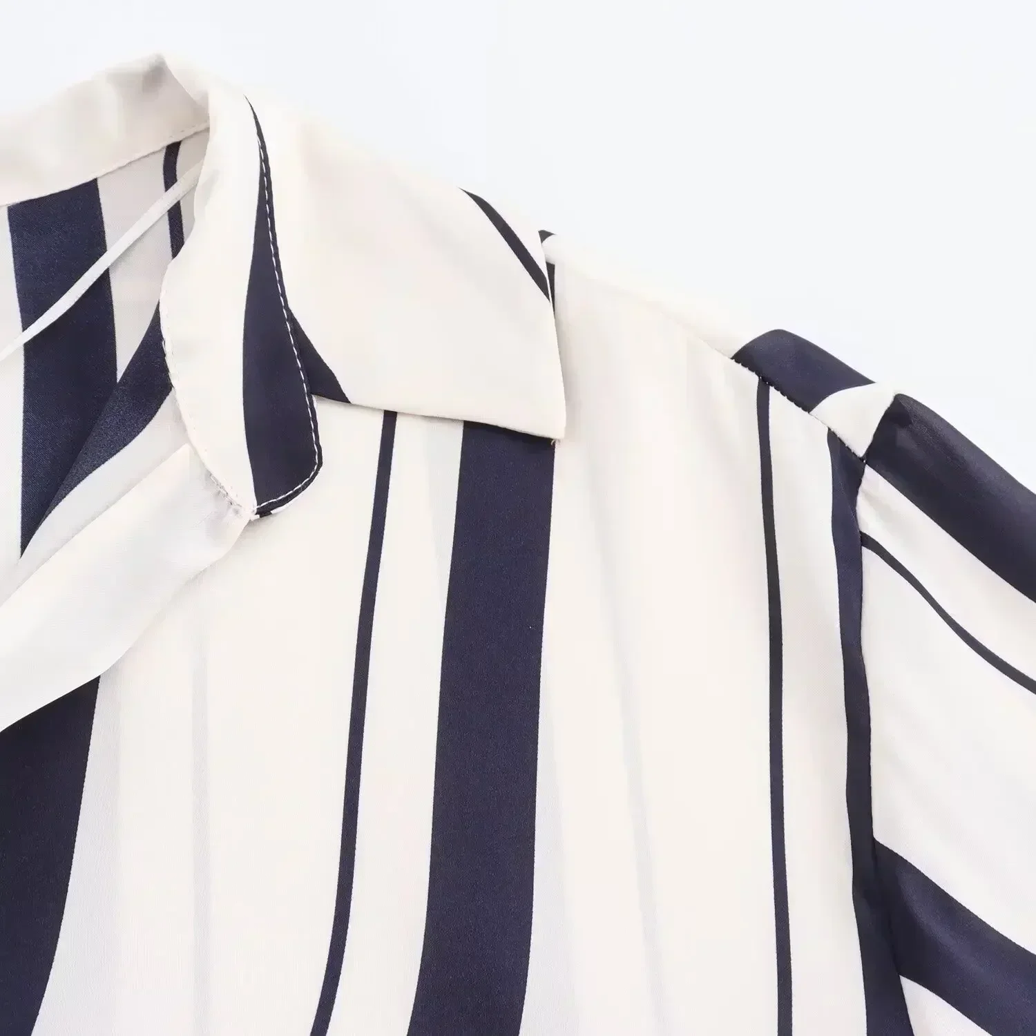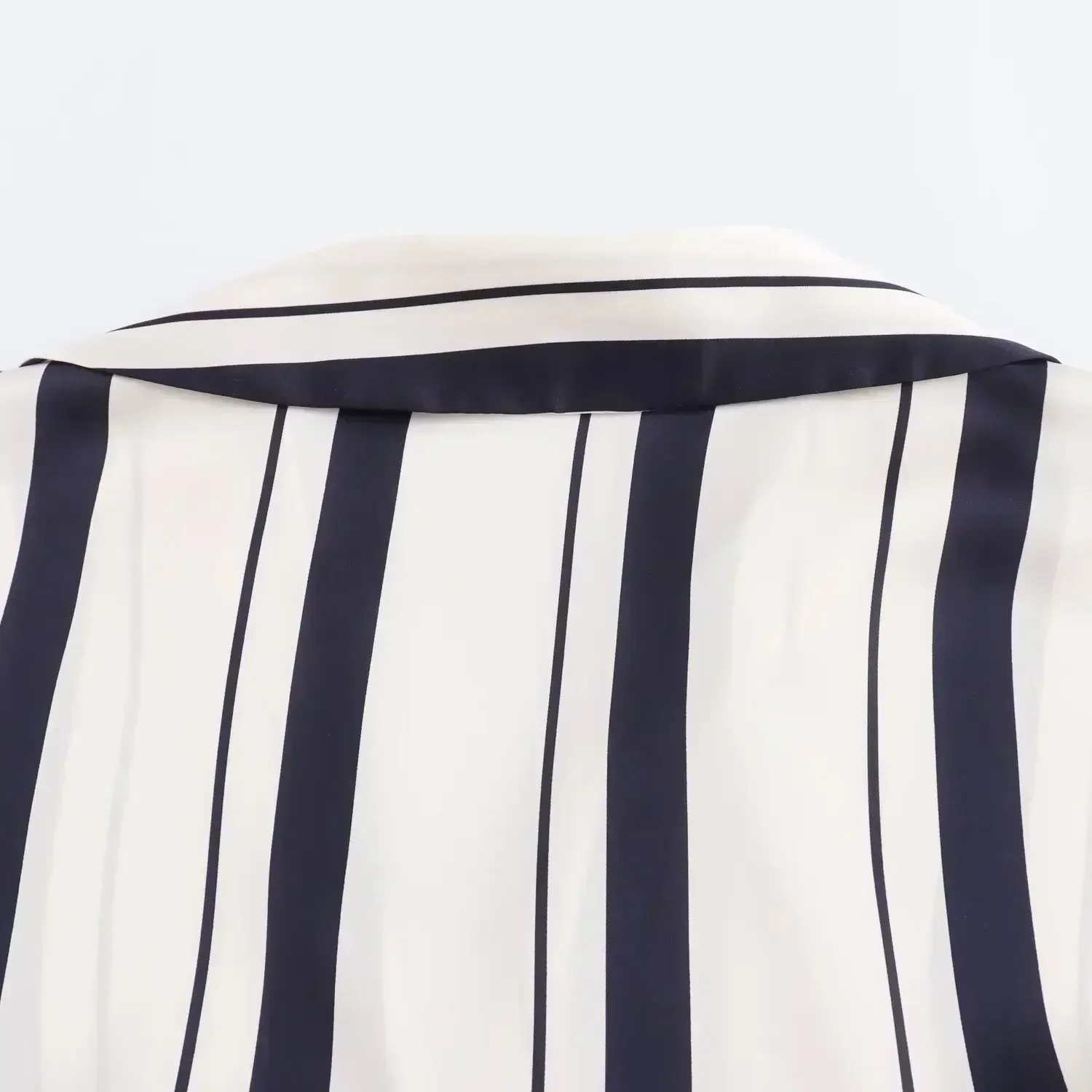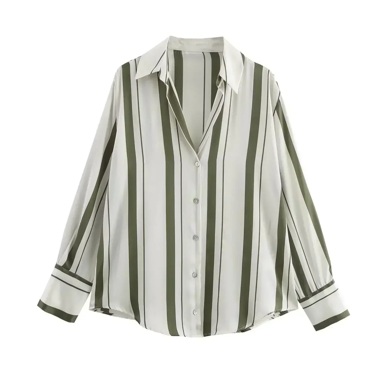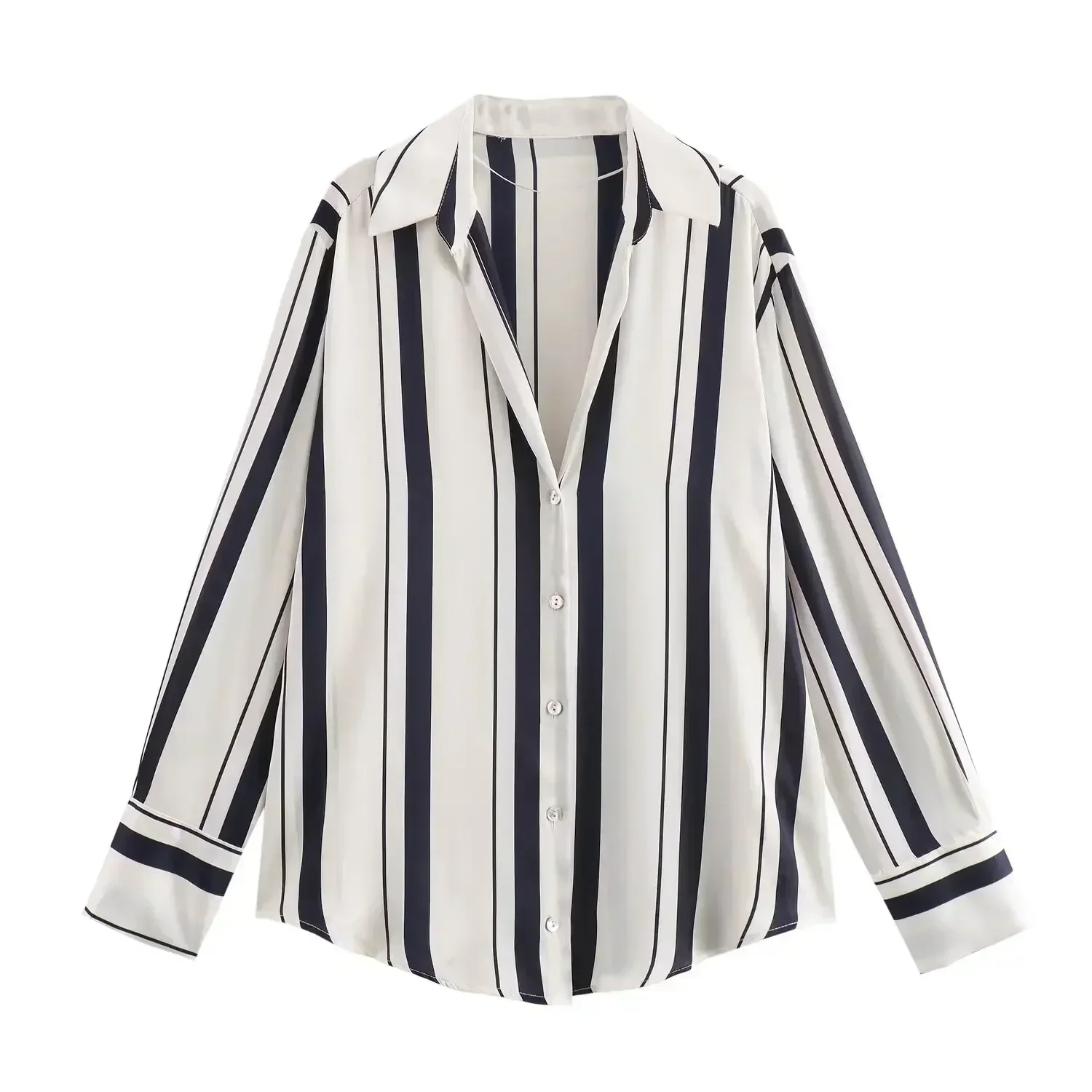 Women's new fashion loose printed striped shirt casual single breasted satin shirt retro long sleeved women's shirt chic top