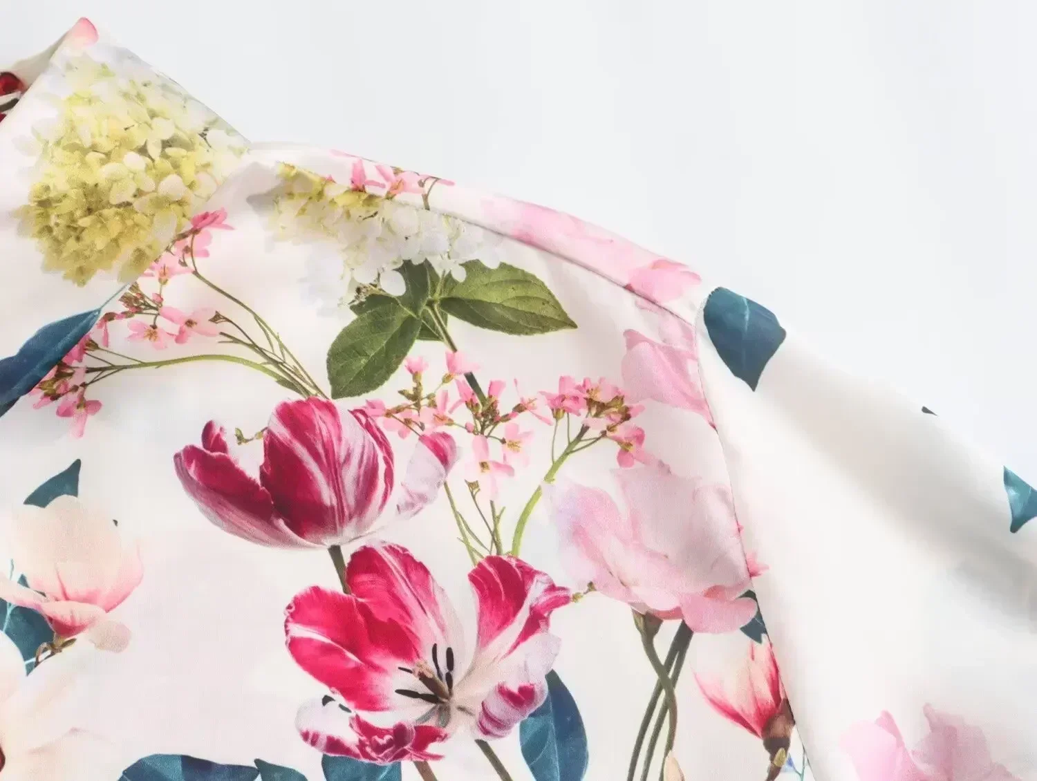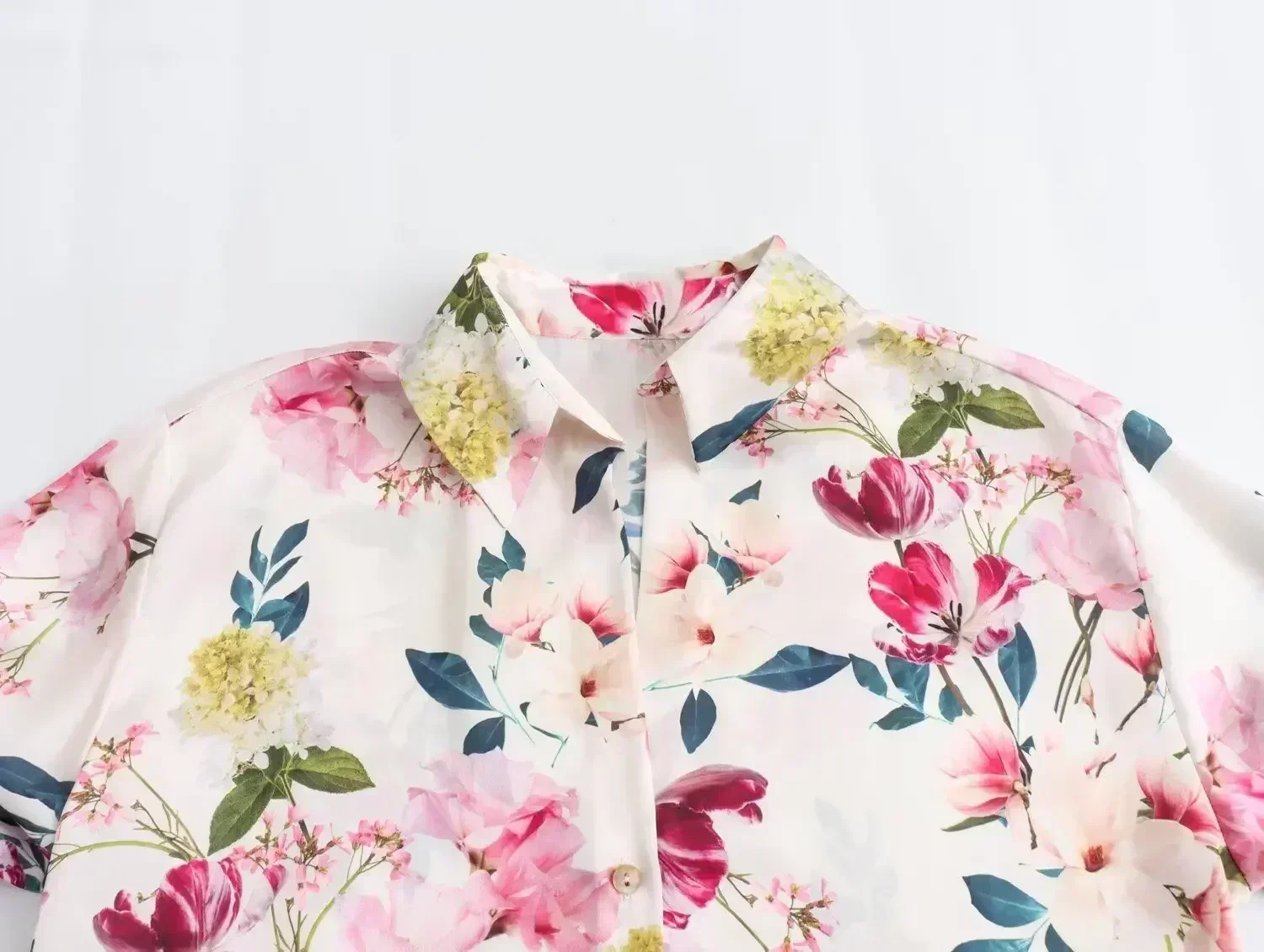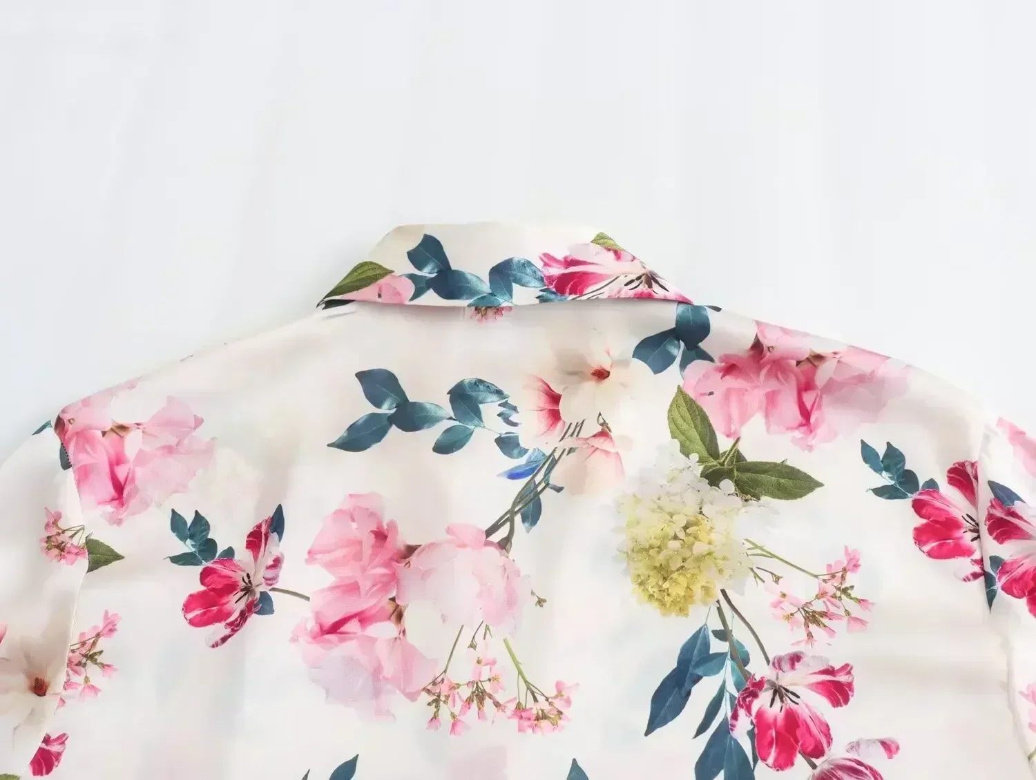 Women's new fashion loose satin texture shirt casual floral print shirt retro long sleeved Button up women's shirt chic top