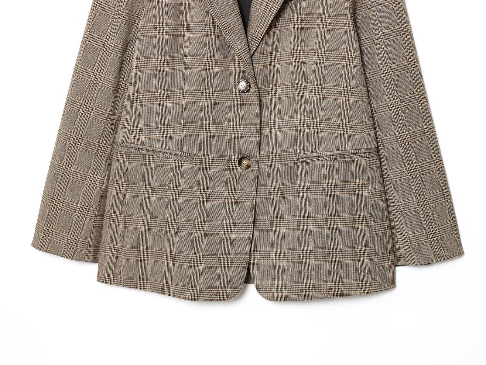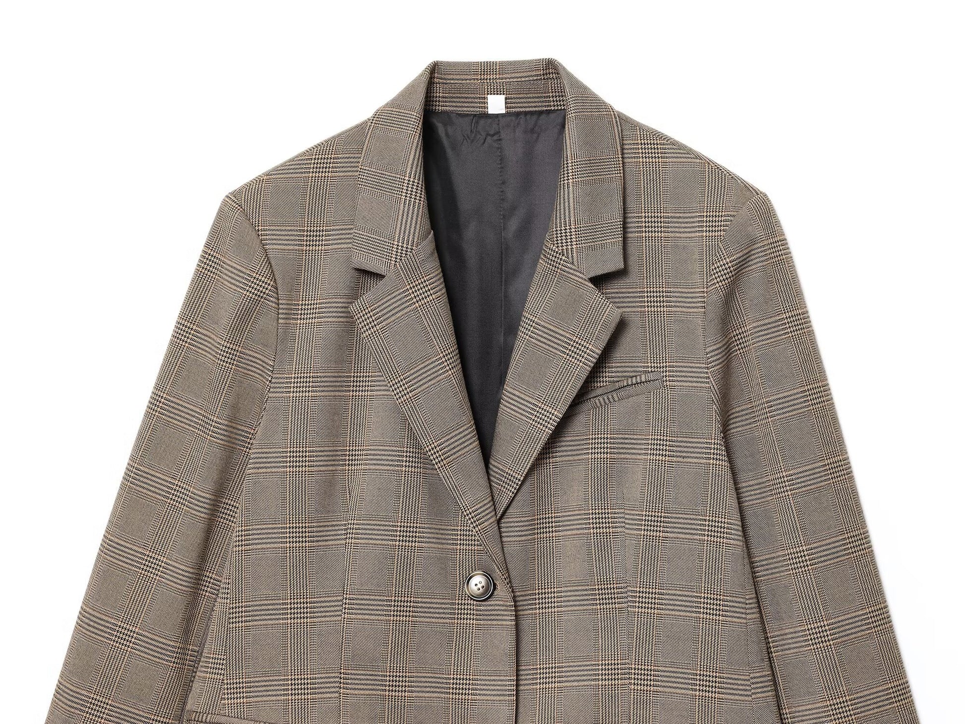 Women's new fashion loose single breasted linen blended plaid suit jacket