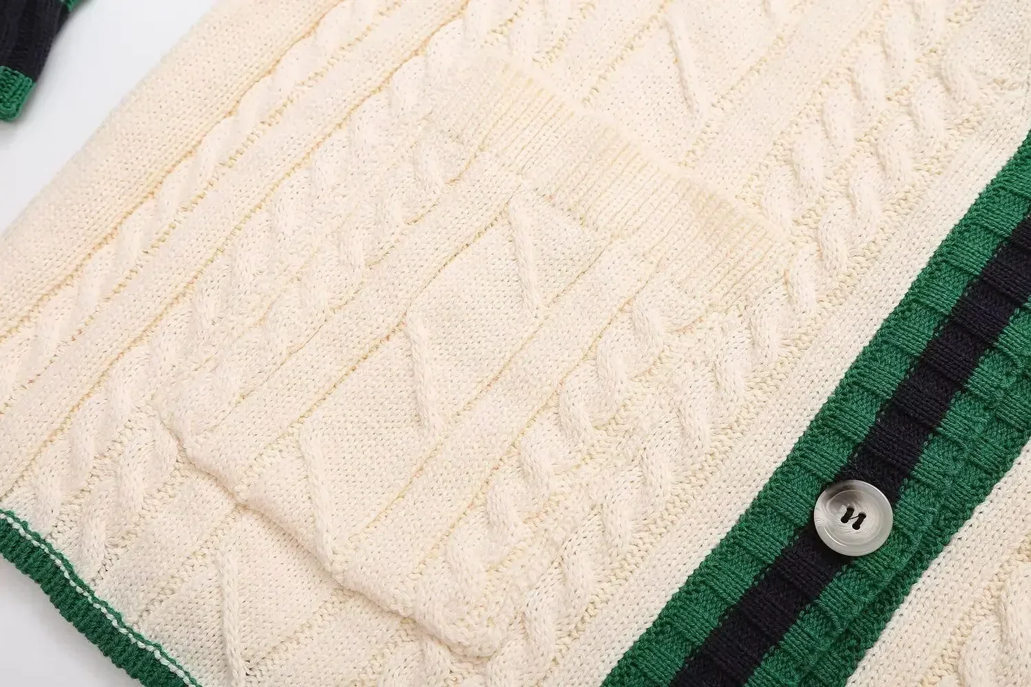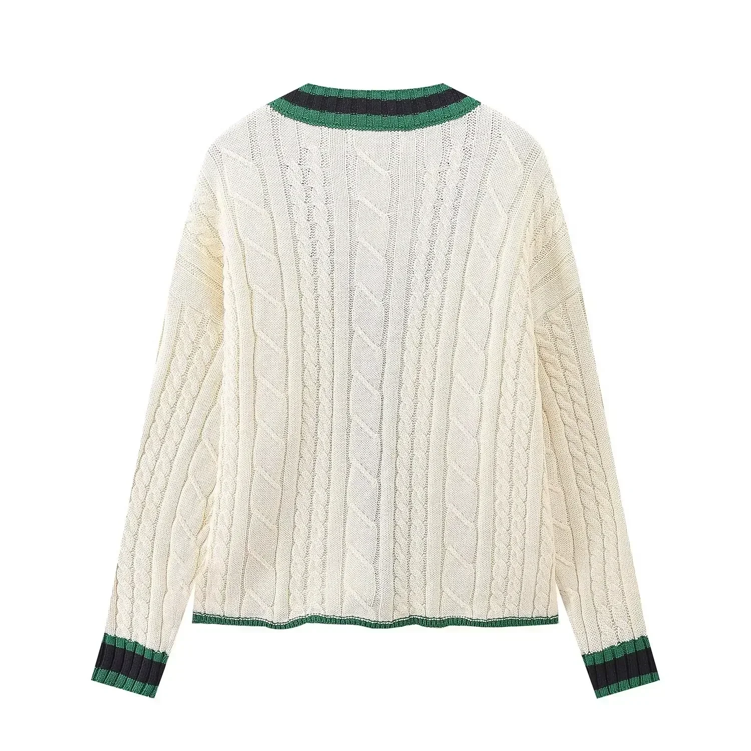 Women's new fashion loose single breasted V Neck contrasting striped knitted coat retro long sleeved pocket Female coat chic top
