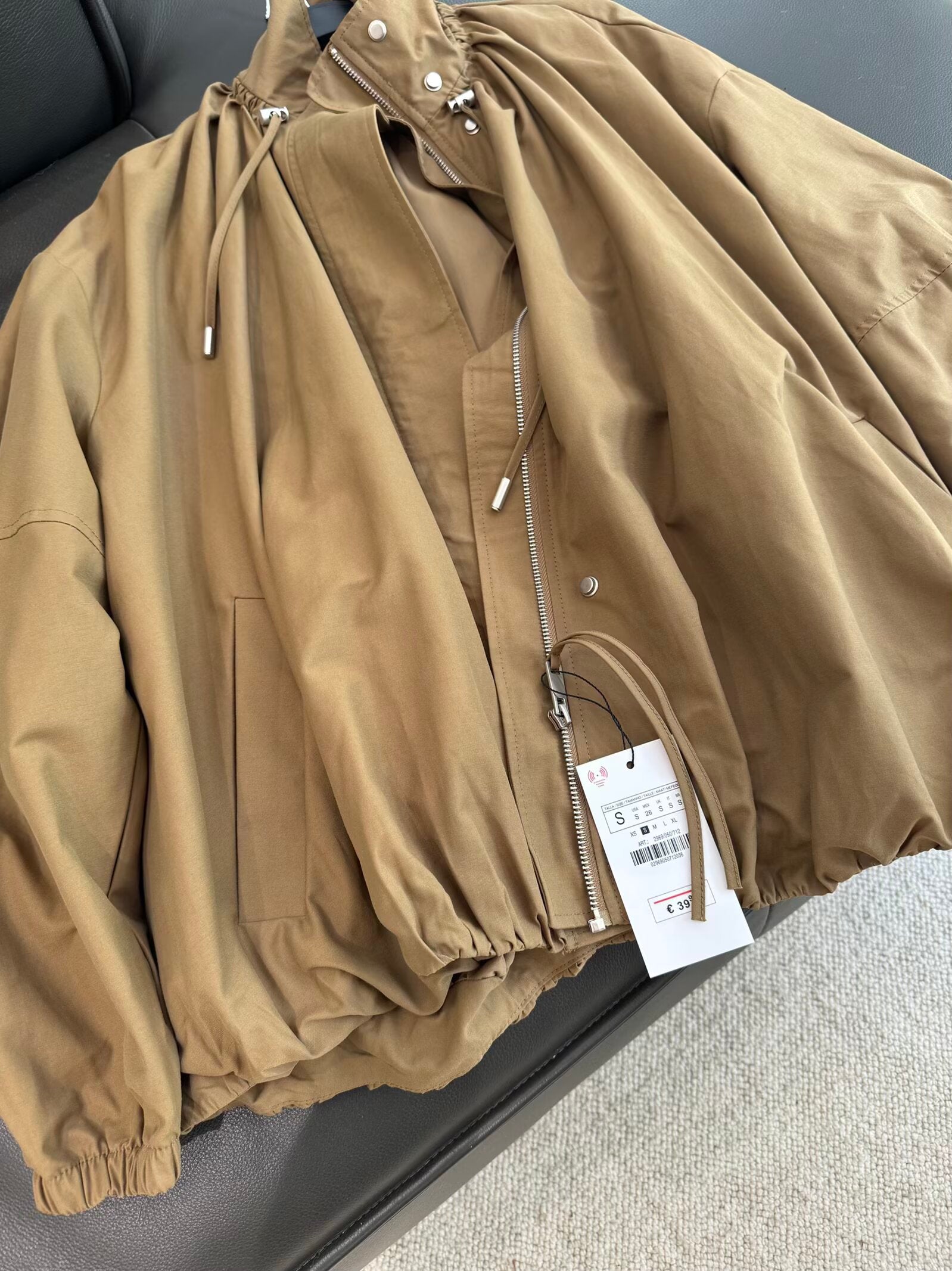 Women's new fashion loose stand collar pleated flight jacket Coat