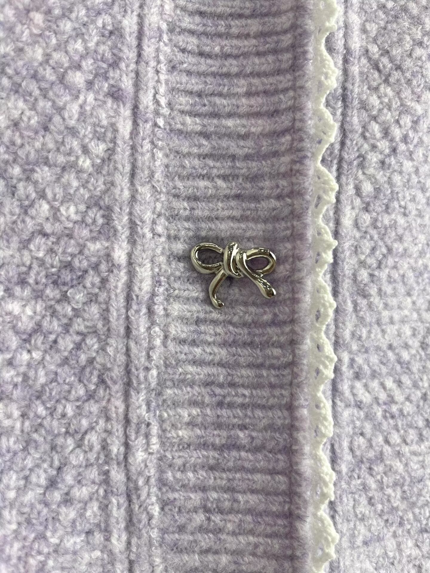 Women's new fashion patchwork lace Bow tie buckle knitted cardigan