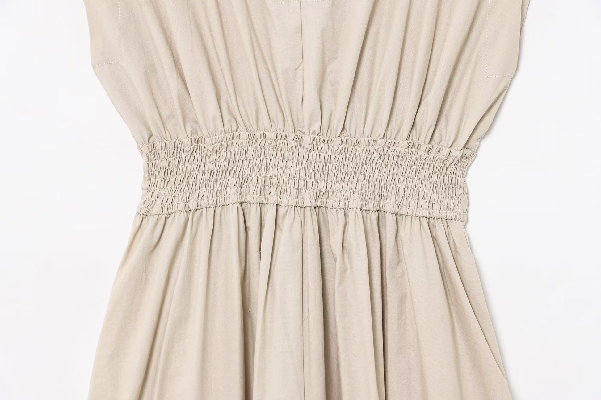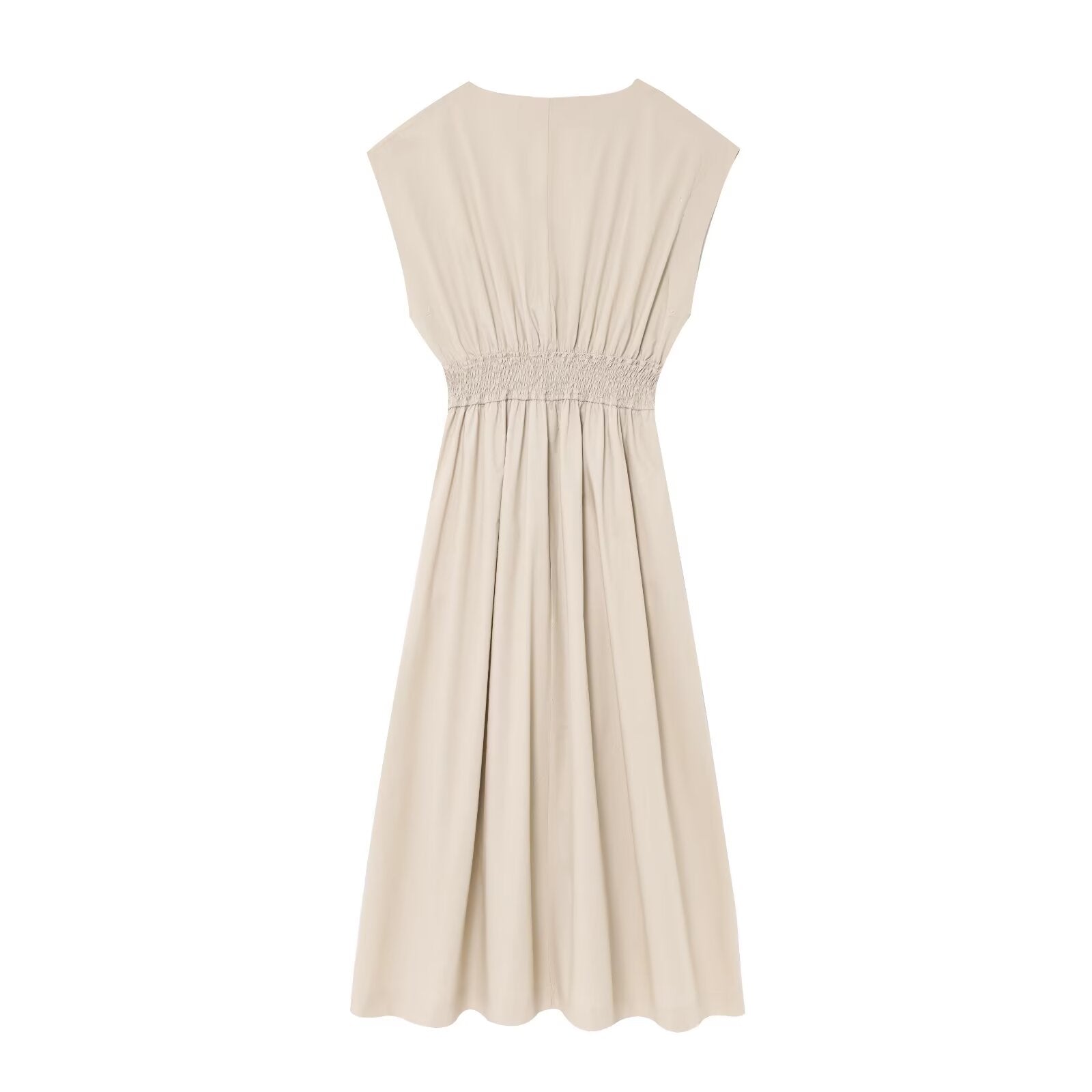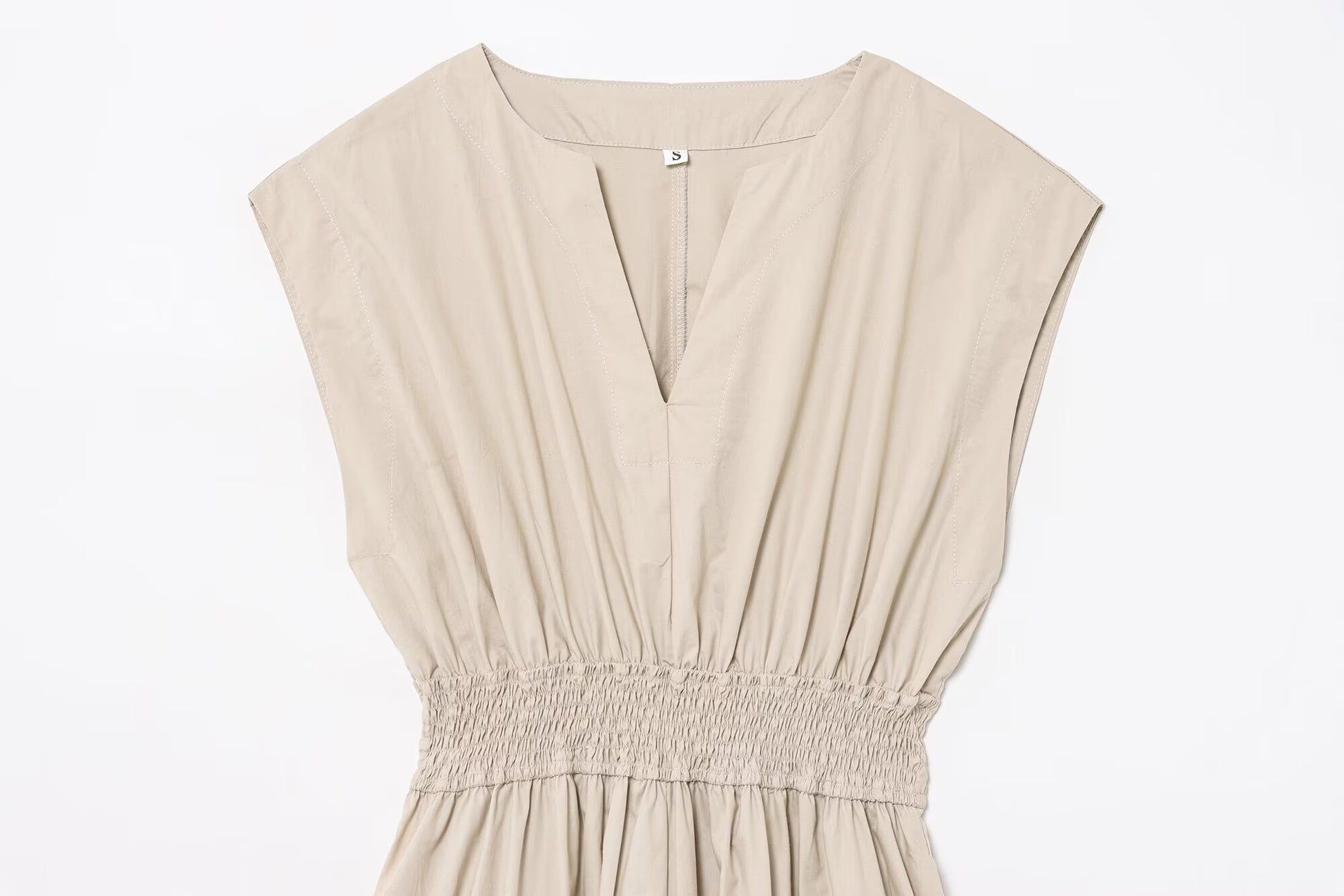 Women's new fashion pleated decoration casual V-neck sleeveless MIDI dress