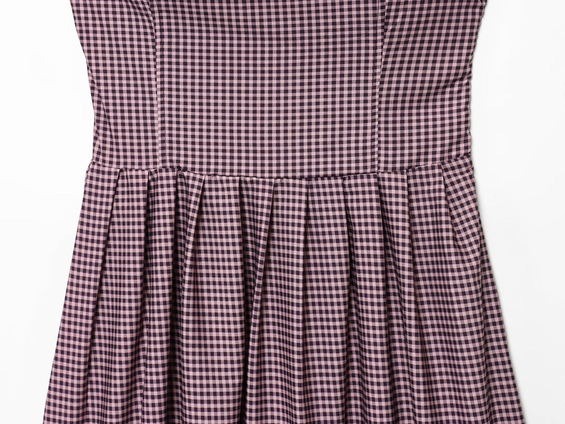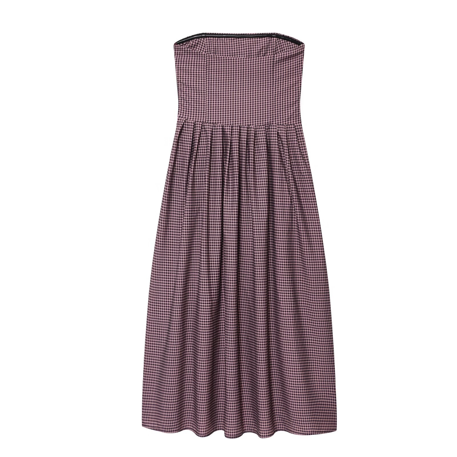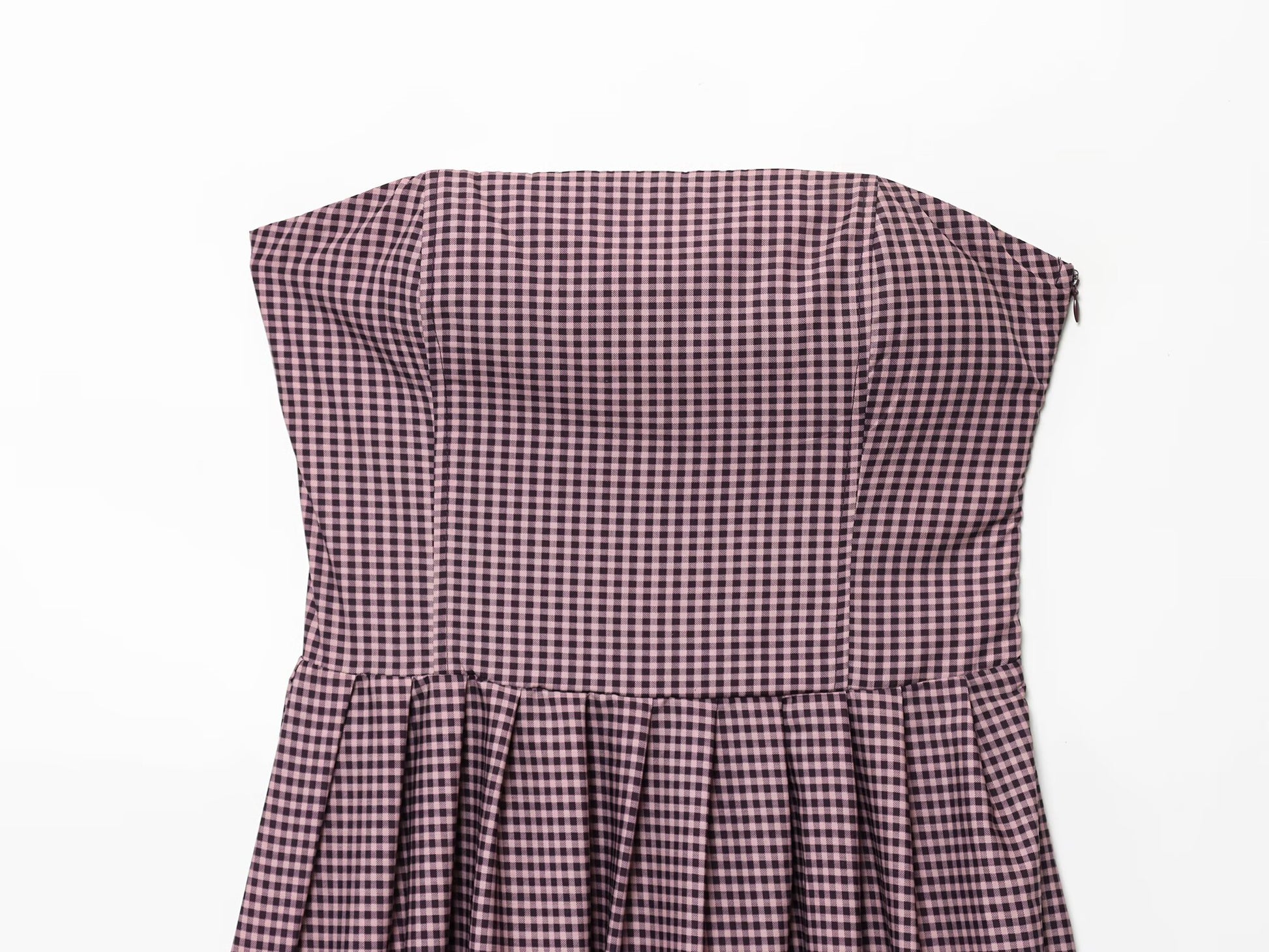 Women's new fashion pleated decorative plaid strapless MIDI dress