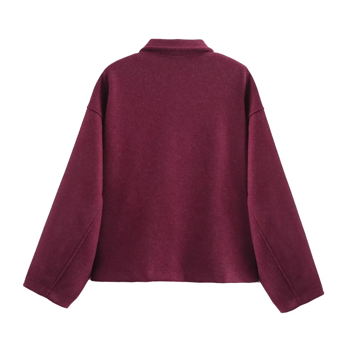 Women's new Fashion pocket decoration casual versatile warm woolen jacket coat retro long sleeved zipper women's coat chic top