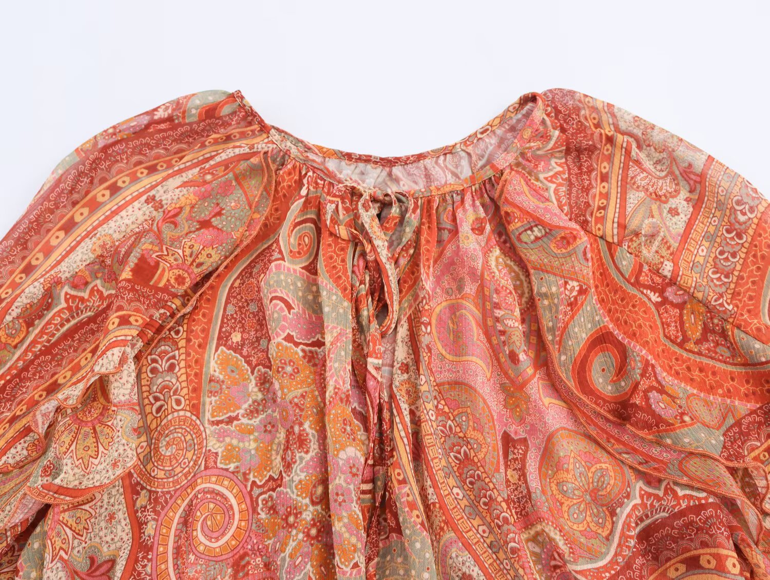 Women's new fashion printed trumpet sleeves ruffle edge top