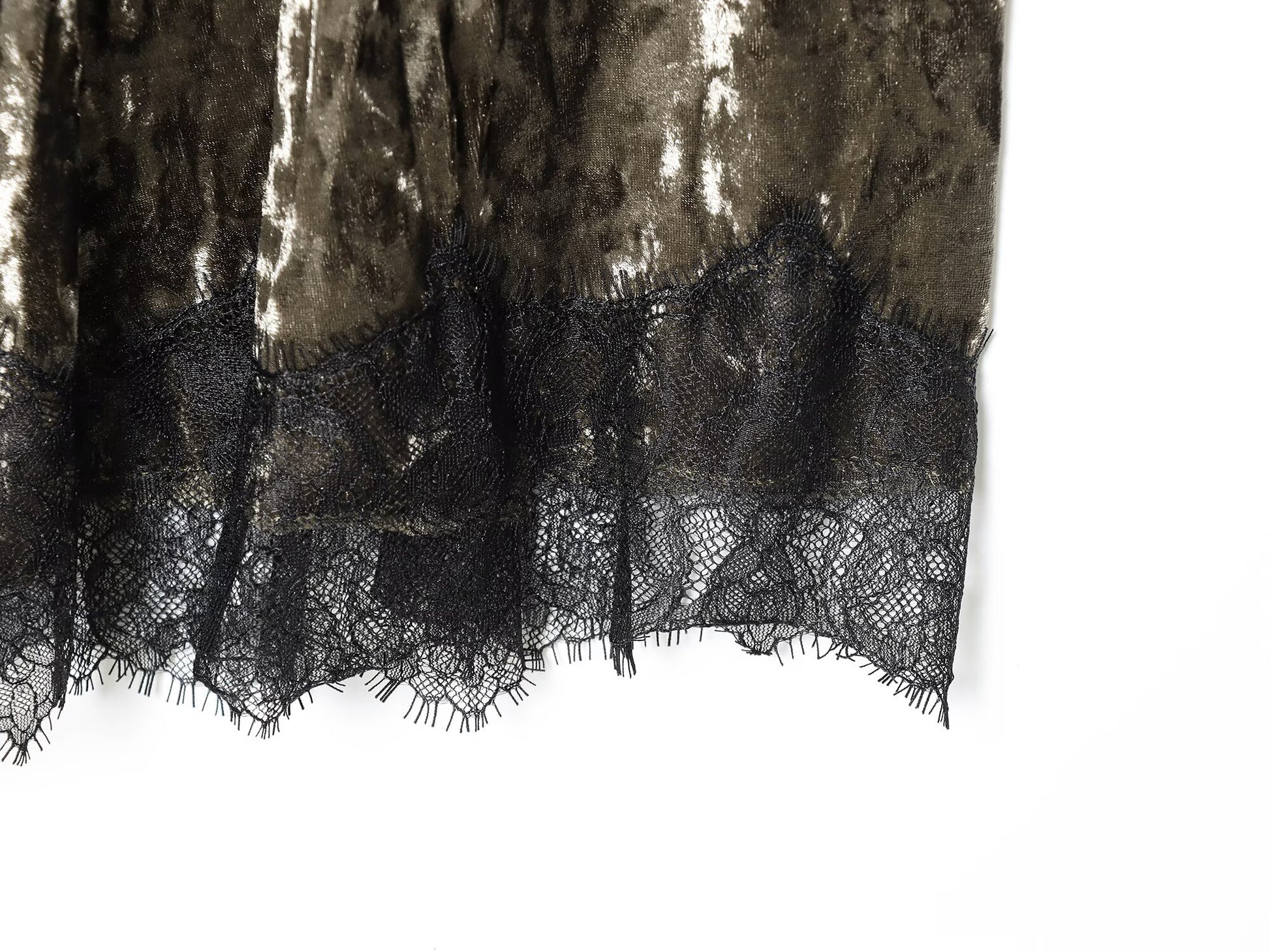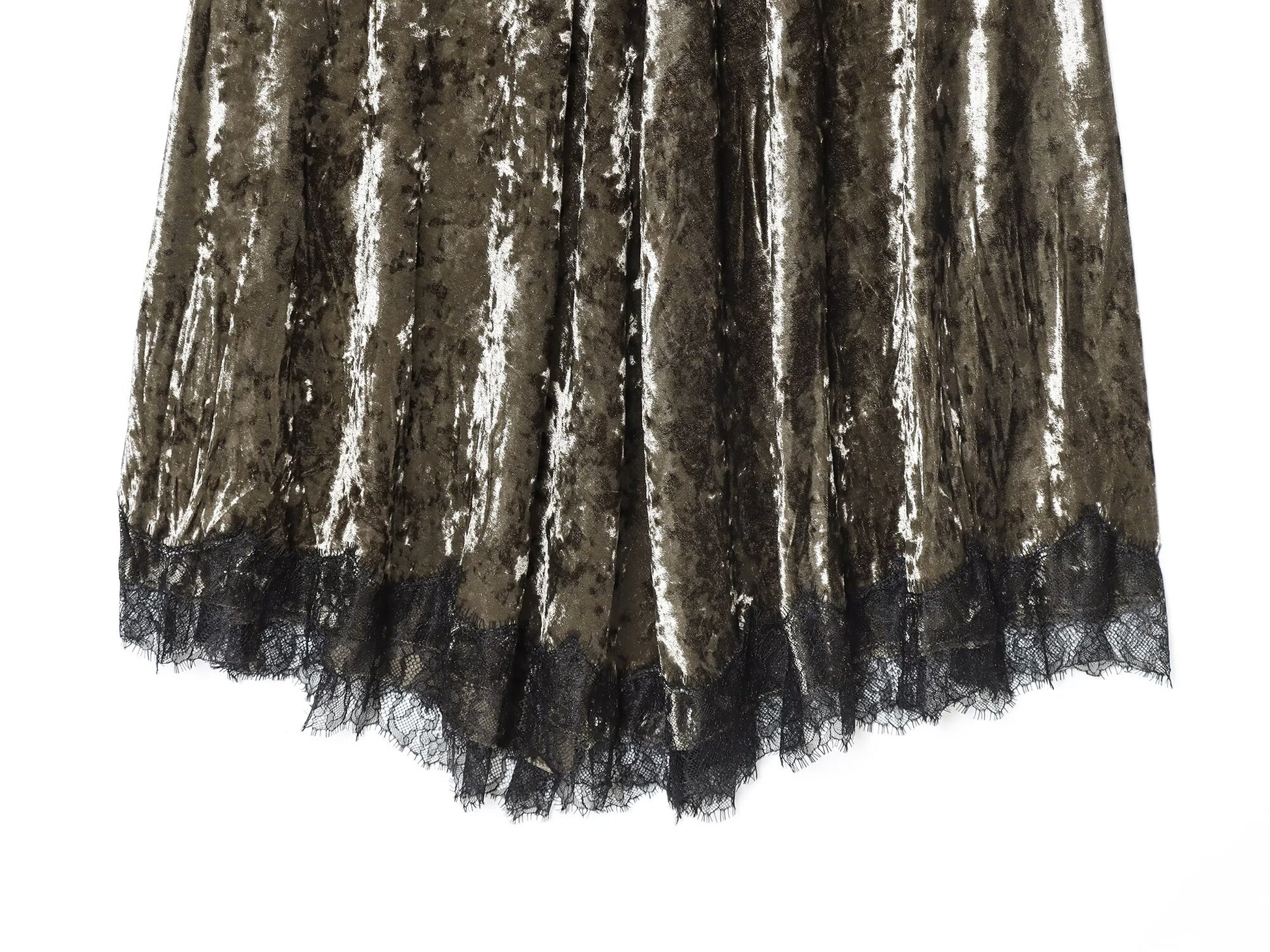 Women's New Fashion Retro Velvet Lace Midi Skirt