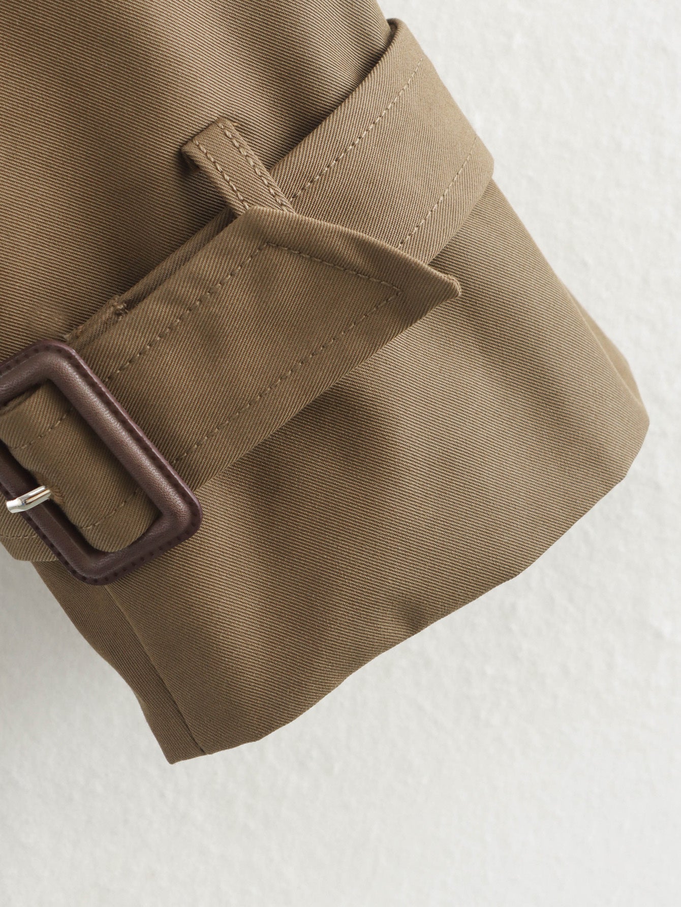 Women's New Fashion Short Double breasted Lapel Windbreaker Coat