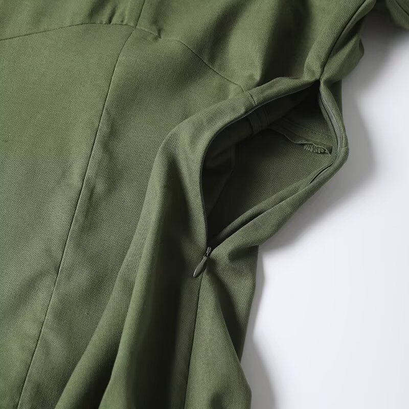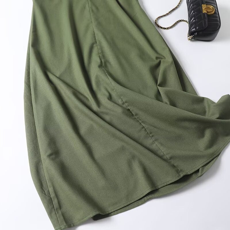 Women's new fashion short sleeved linen blended V-neck MIDI dress