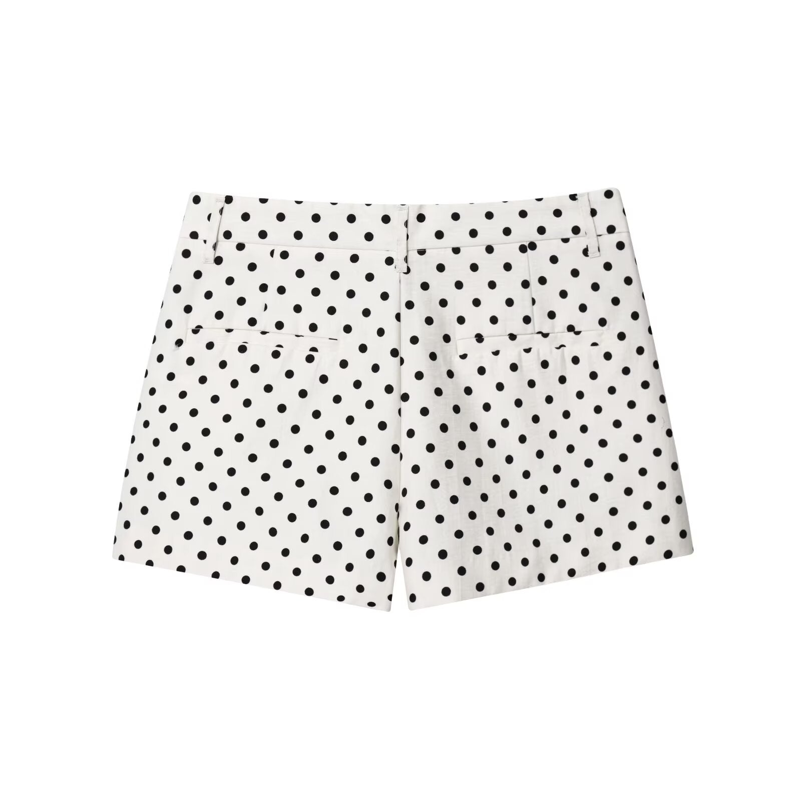 Women's new fashion short stand collar polka dot Bubble gauze Coat + Shorts suit