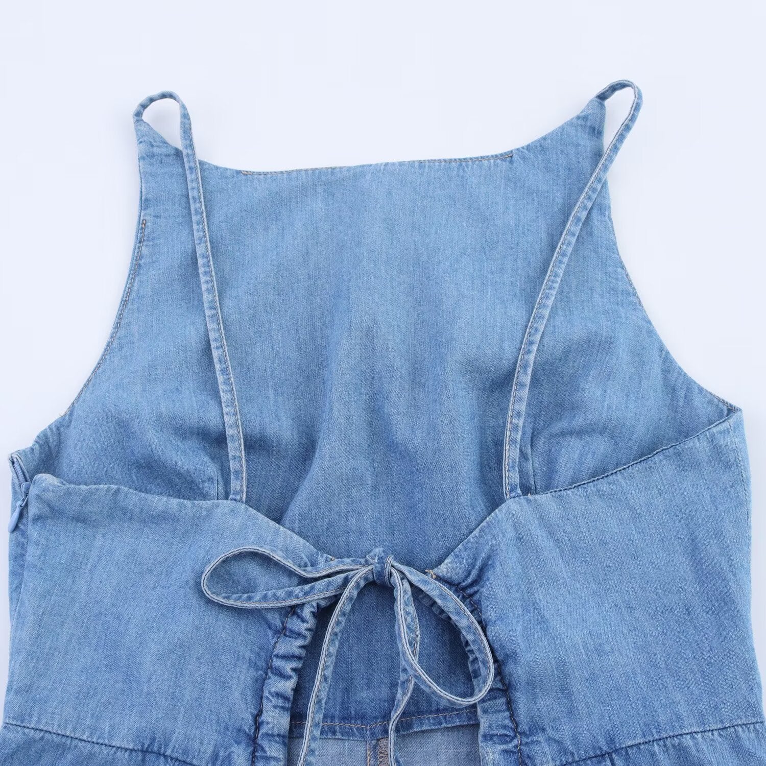 Women's new fashion sleeveless backless denim short jumpsuit