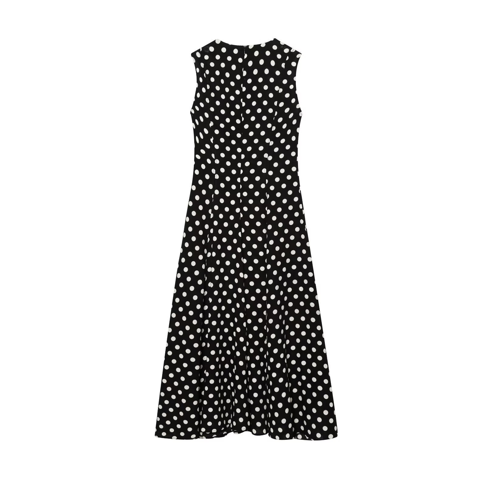 women's New Fashion sleeveless polka dot printed draped MIDI dress