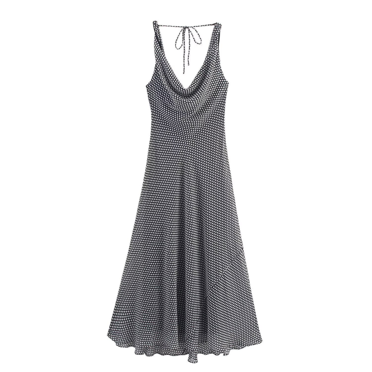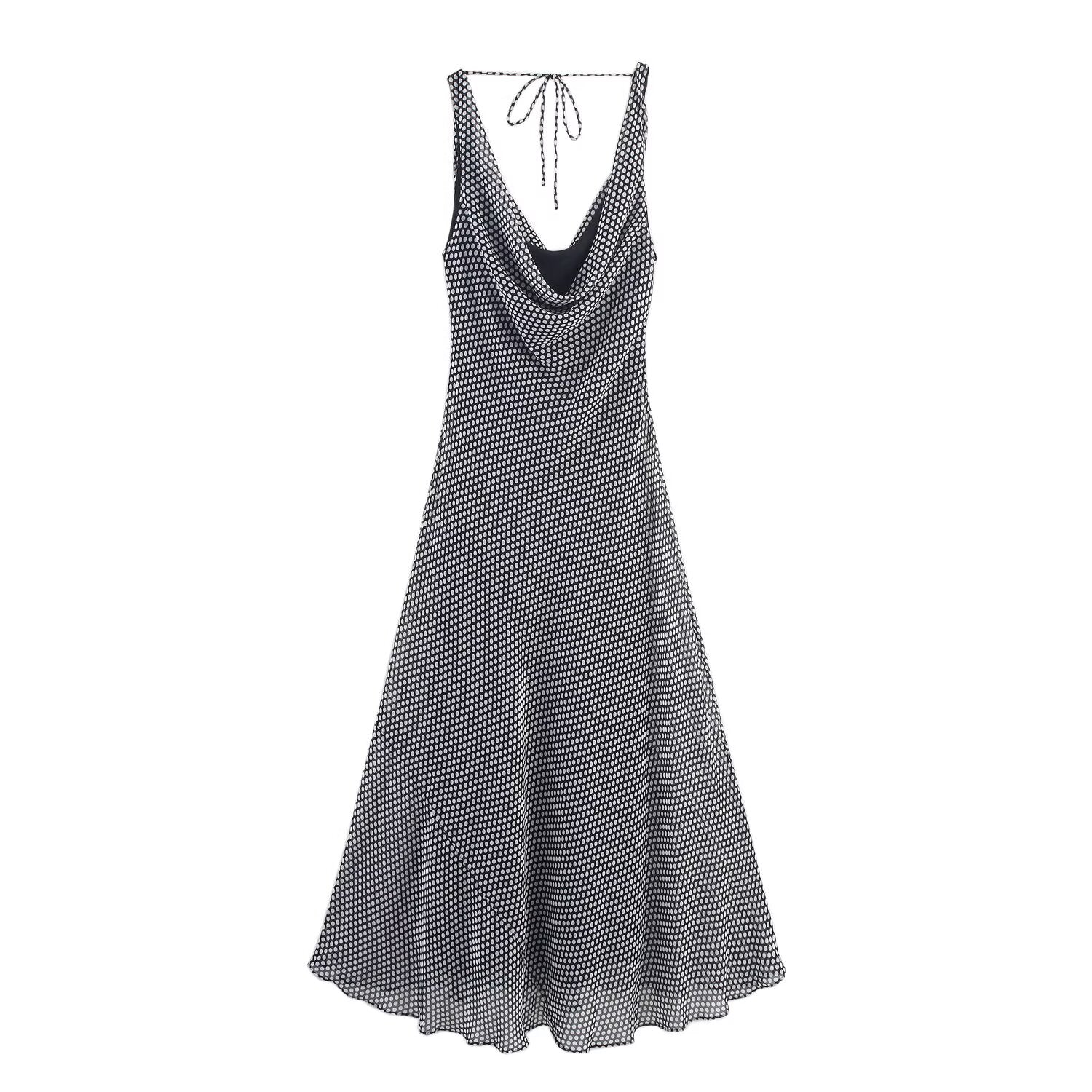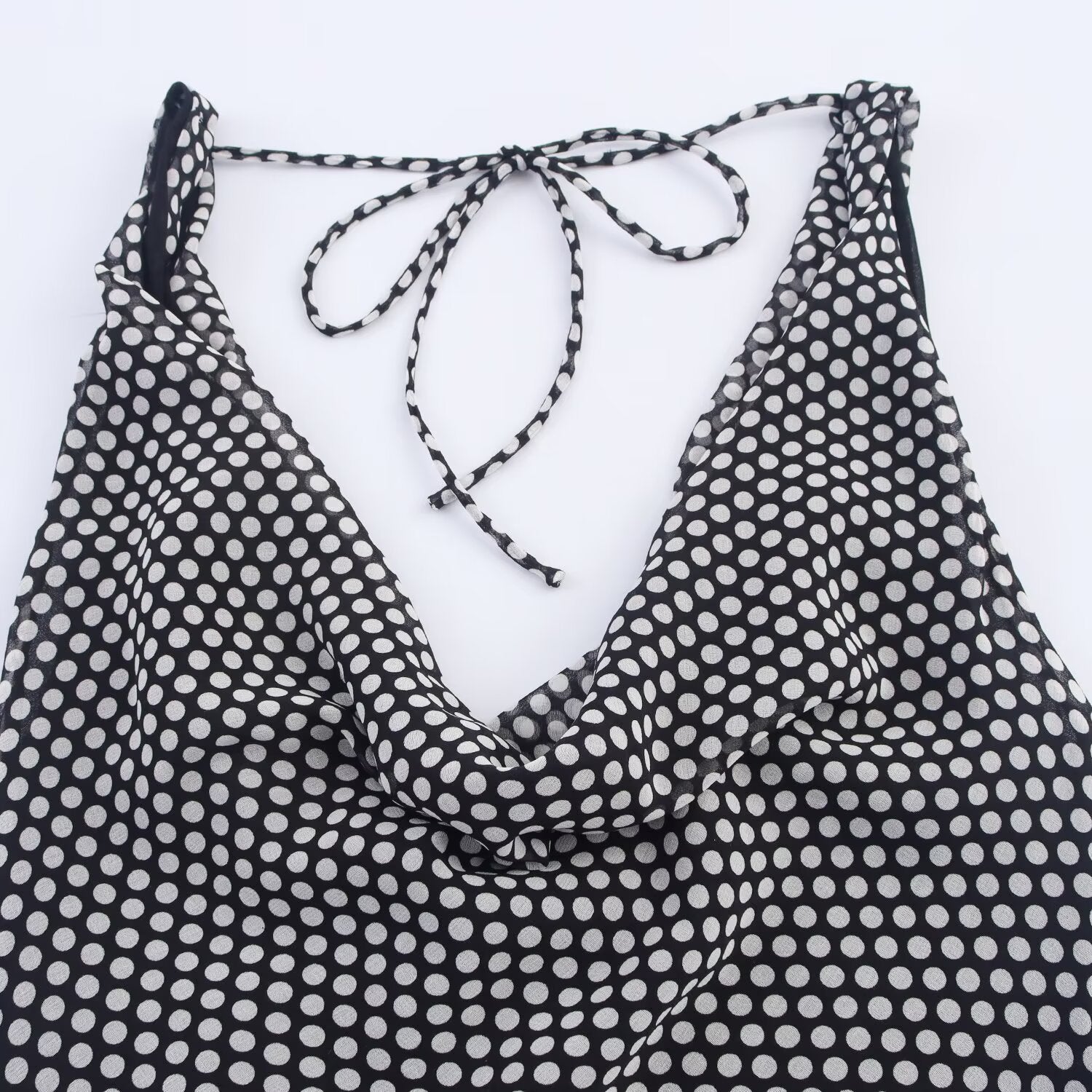 Women's new fashion sleeveless polka dot printed MIDI dress