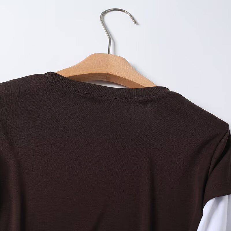 Women's new fashion splicing fake two-piece style long sleeved T-shirt