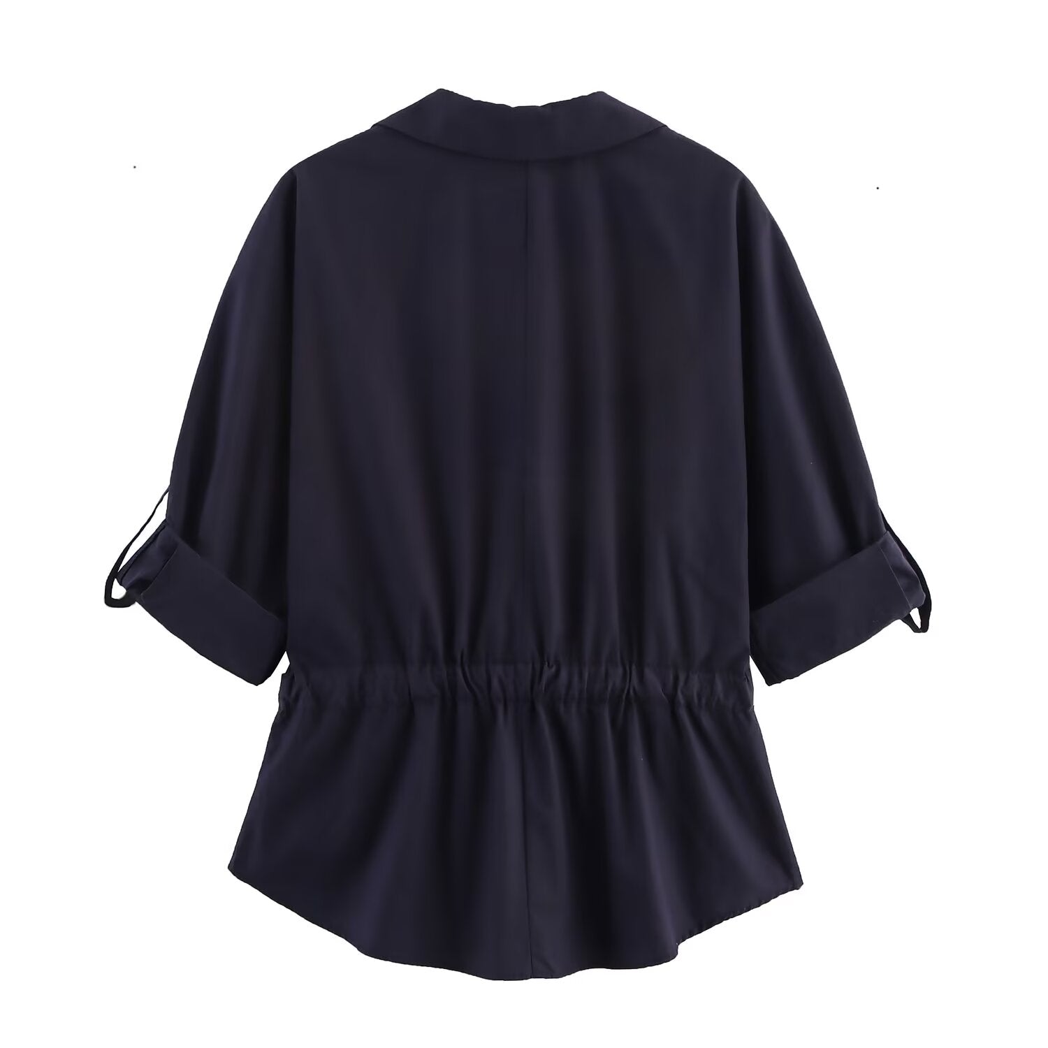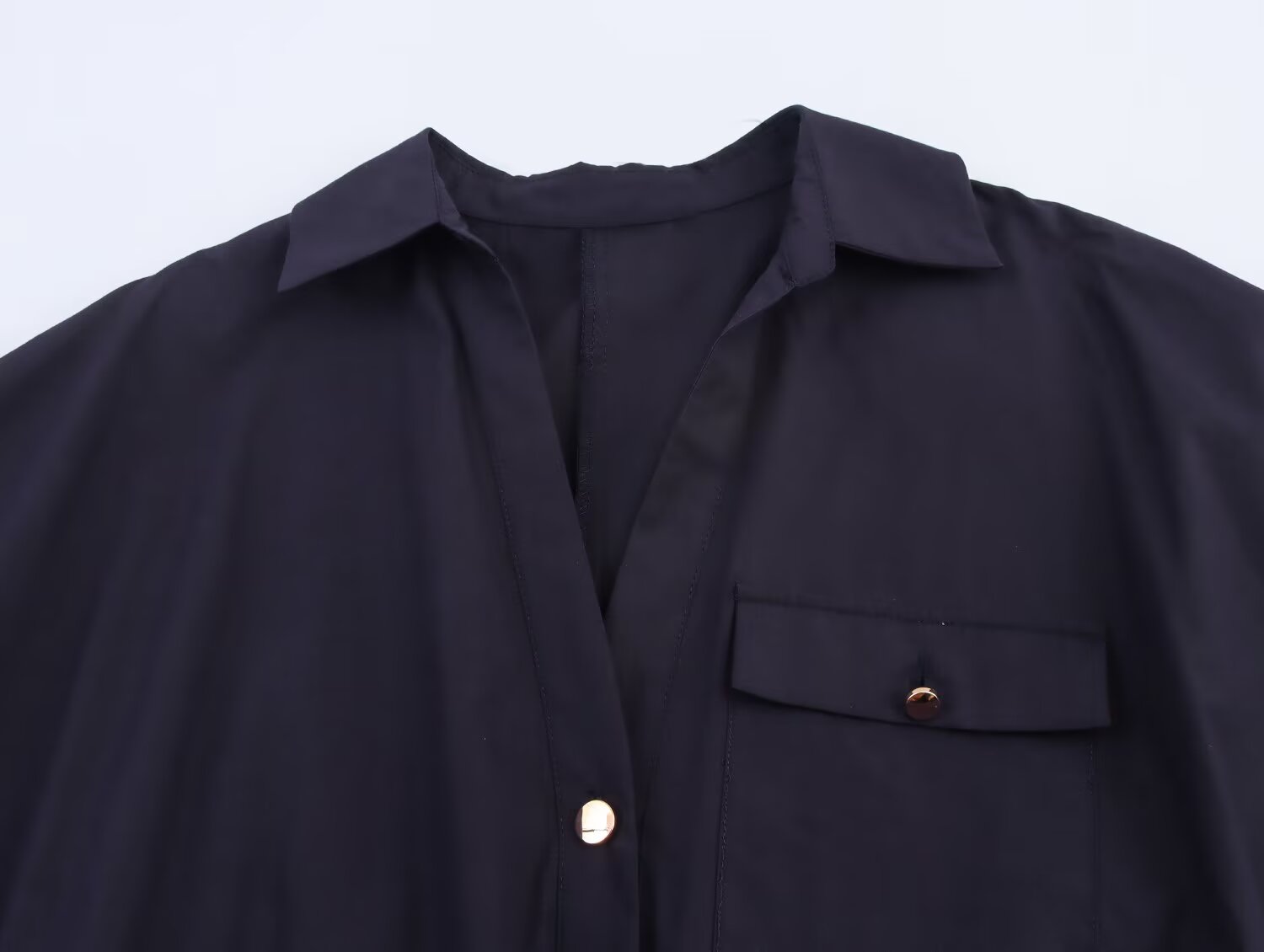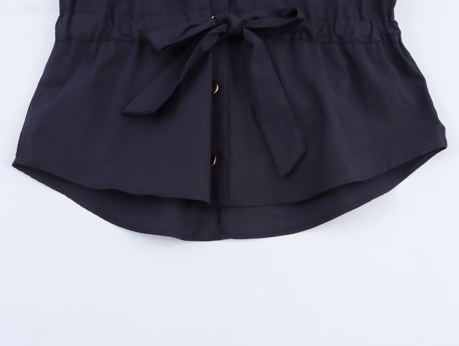 Women's New Fashion With Belt Casual Single breasted Poplin Shirt