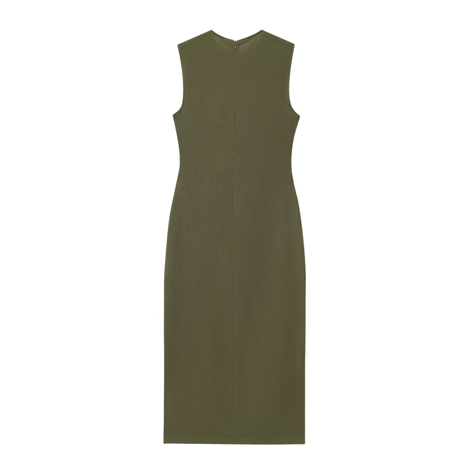 Women's New Fashion With Belt Linen Blended Sleeveless Midi Dress