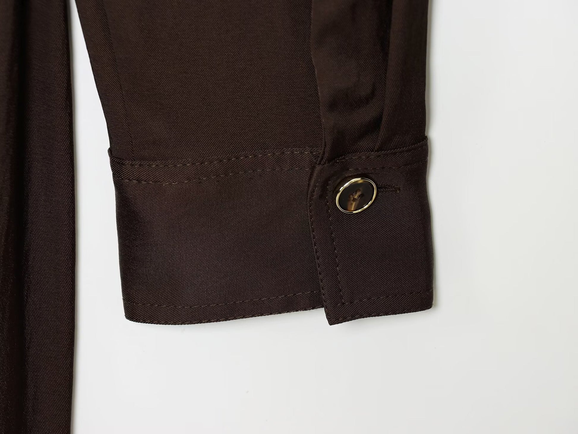 Women's New Fashion With Belt Long Sleeve Pleated Midi Dress