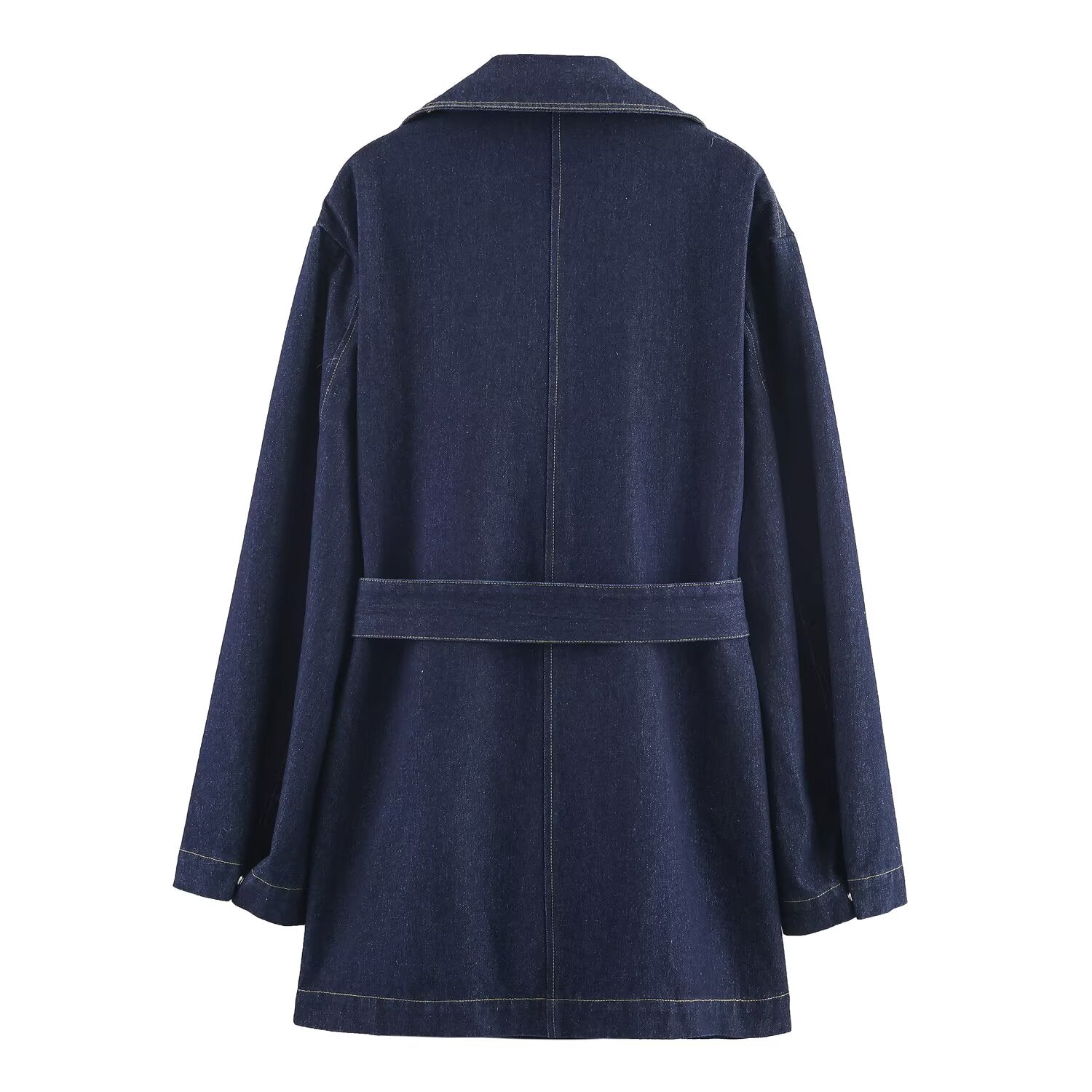 Women's new fashion with Belt loose short denim windbreaker Coat