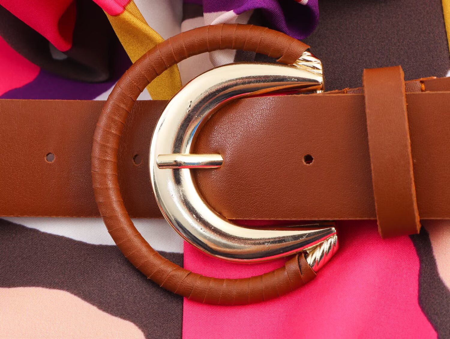 Women's New Fashion With Belt Printed V-neck Poplin Midi Dress