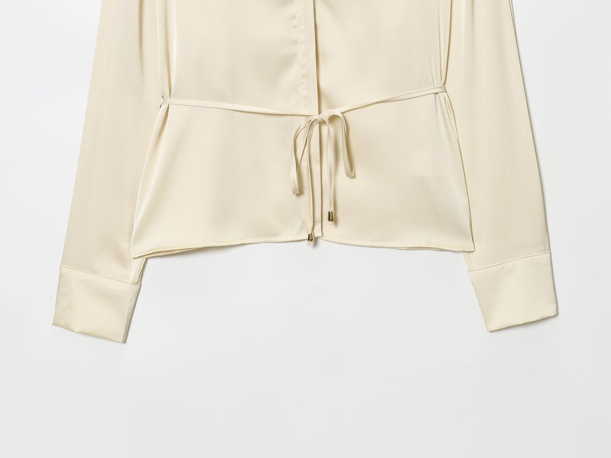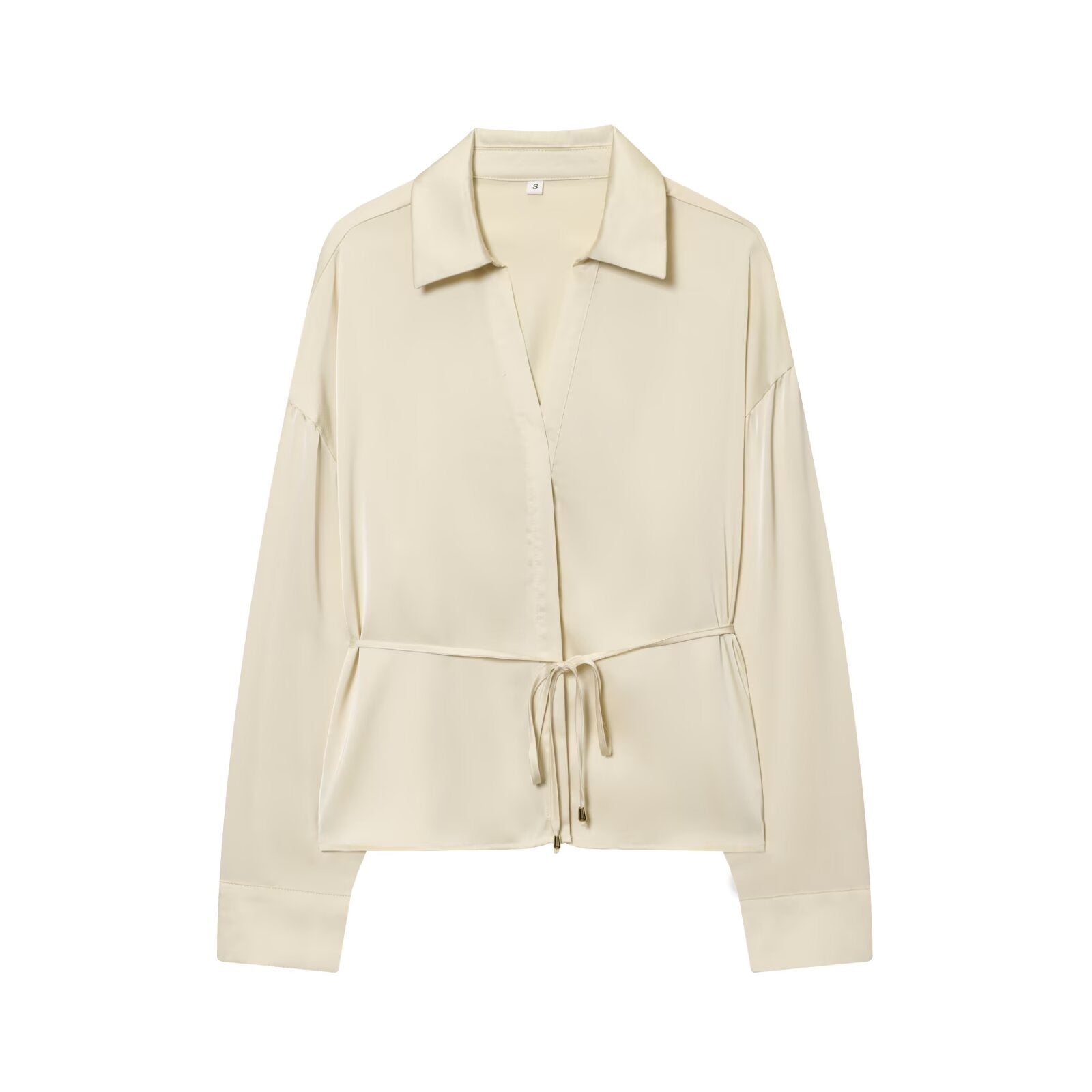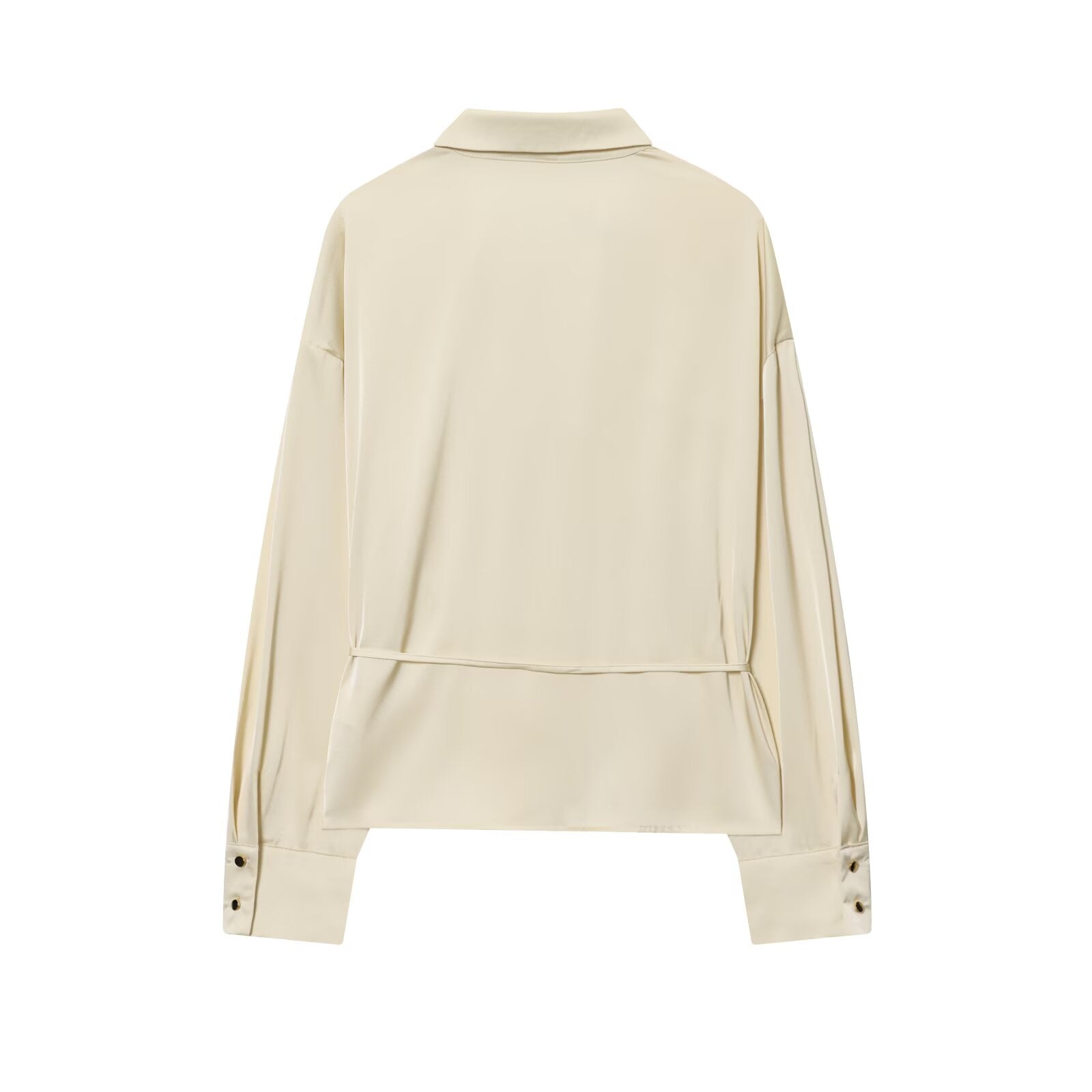 Women's New Fashion With Belt Satin Texture Lapel Shirt