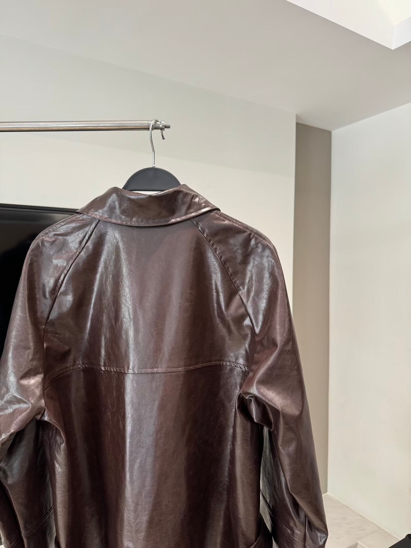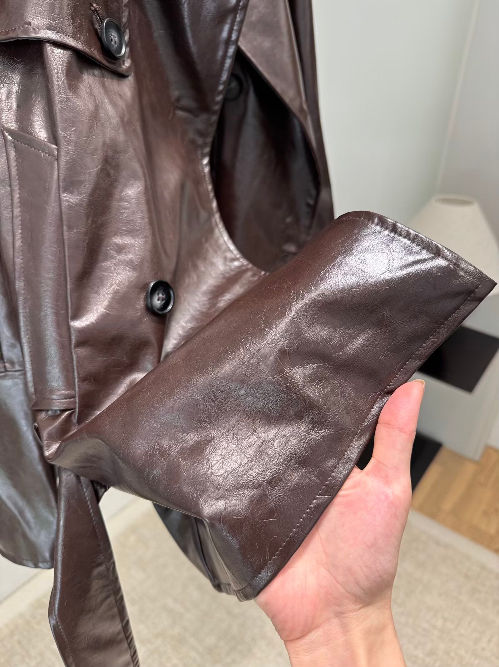 Women's new fashion with Belt short faux leather windbreaker Coat