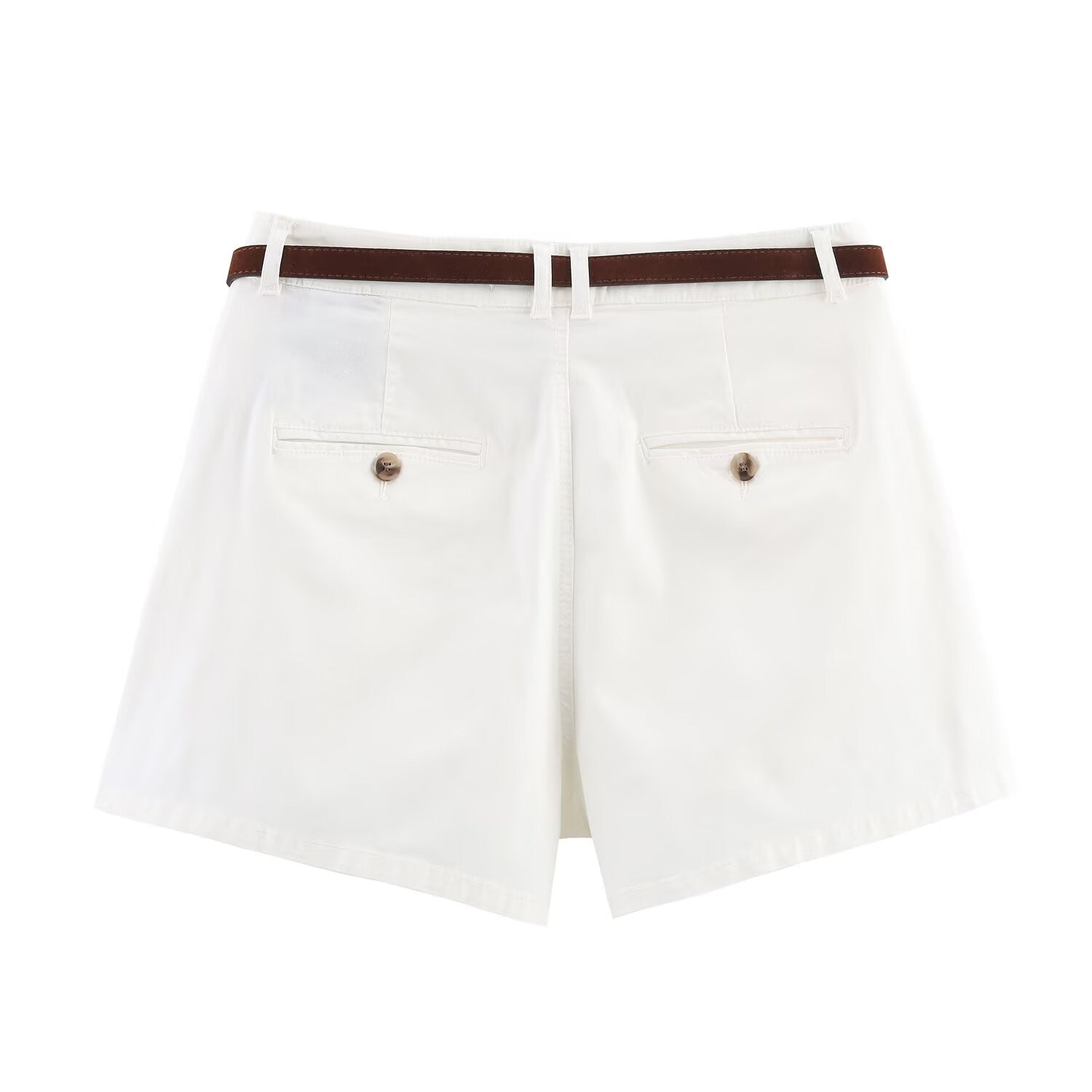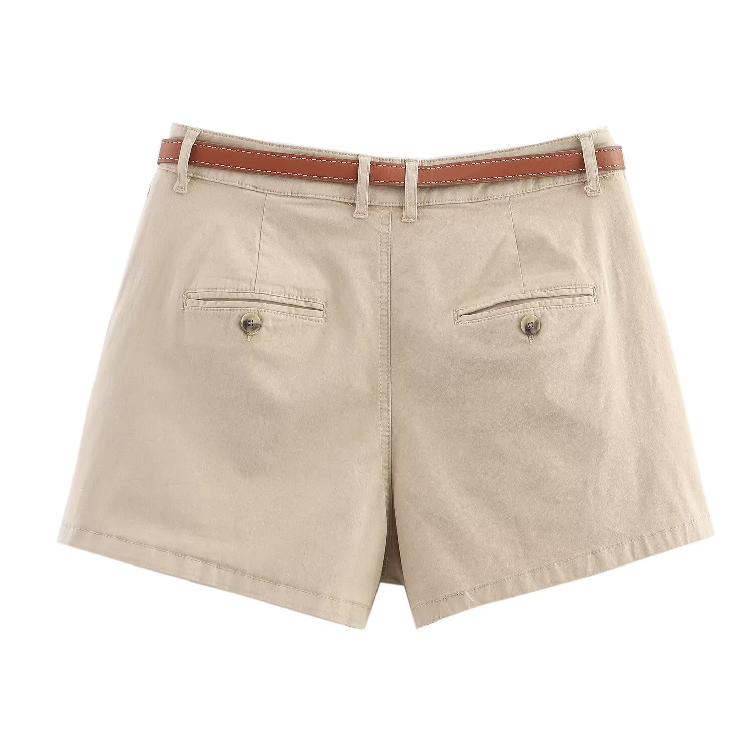 Women's' New Fashion With Belt Side Pocket Casual Versatile High Waist Shorts