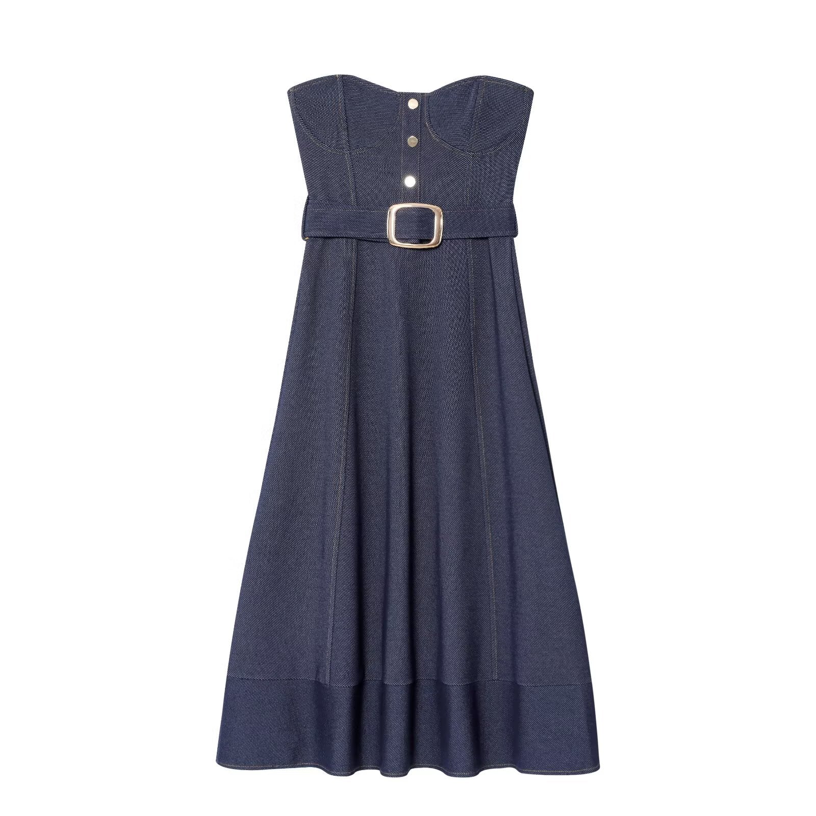 Women's new fashion with Belt sleeveless strapless MIDI dress