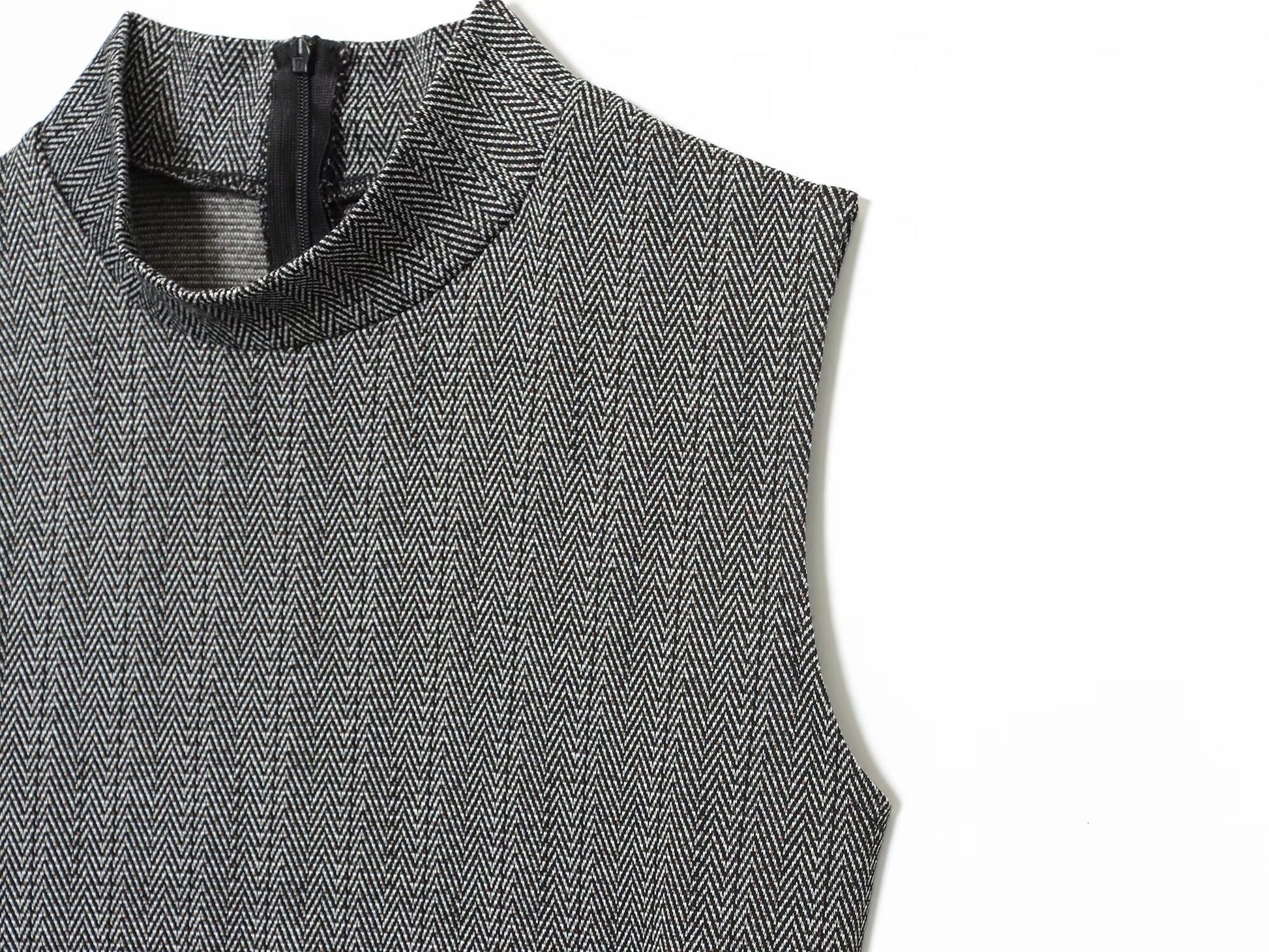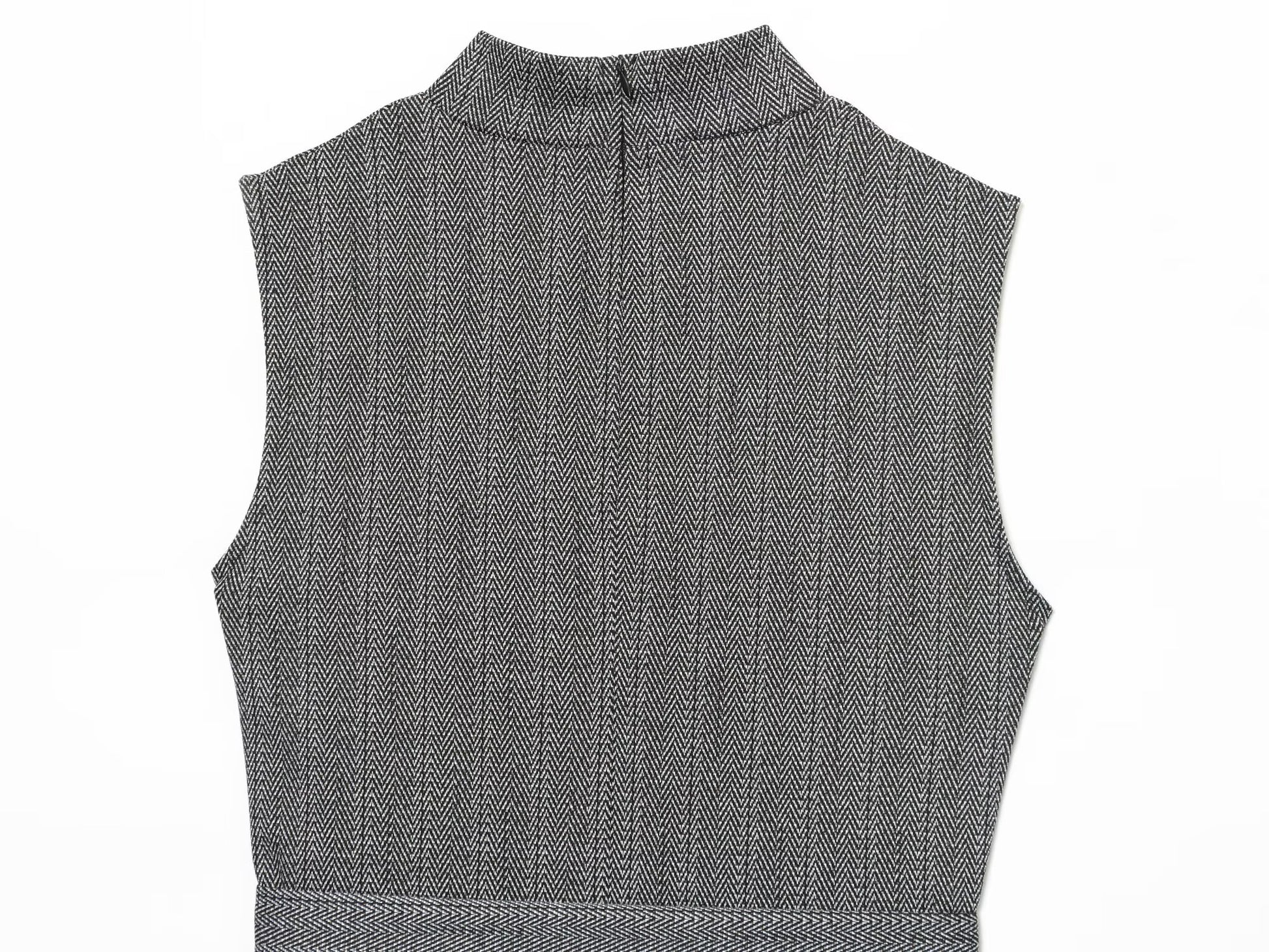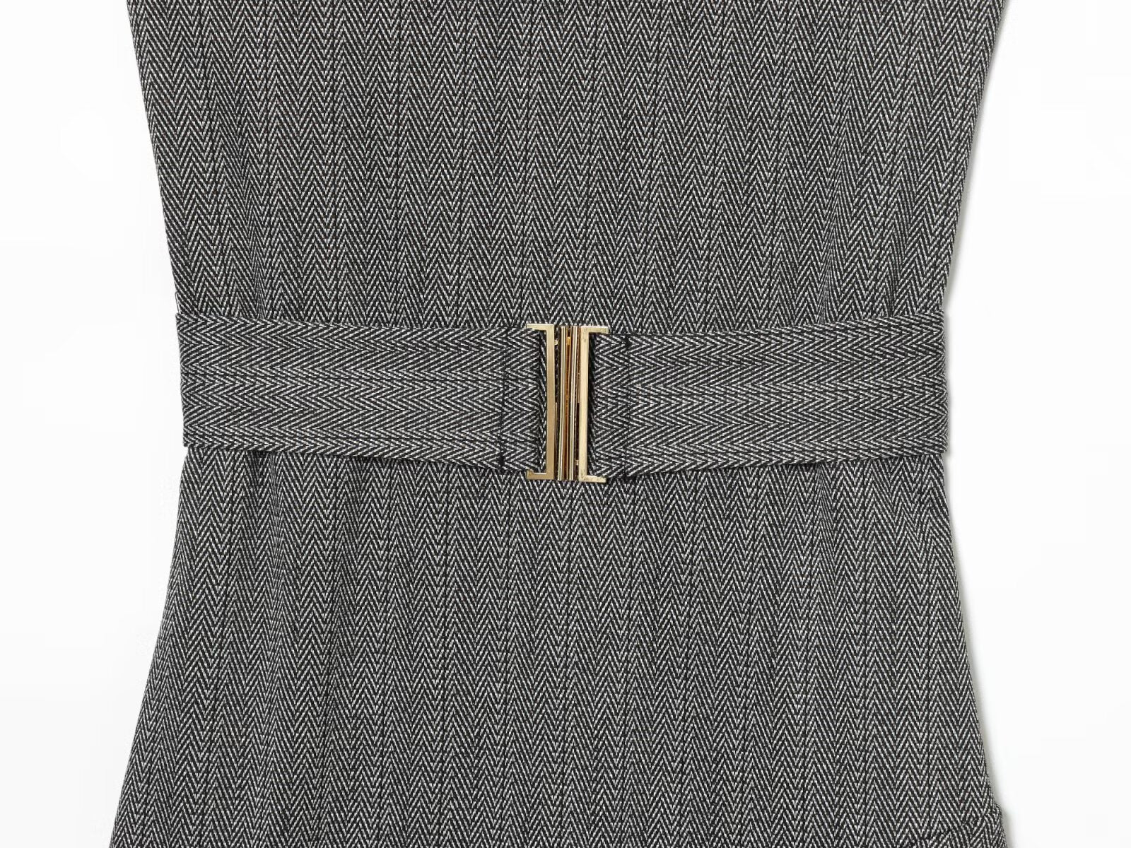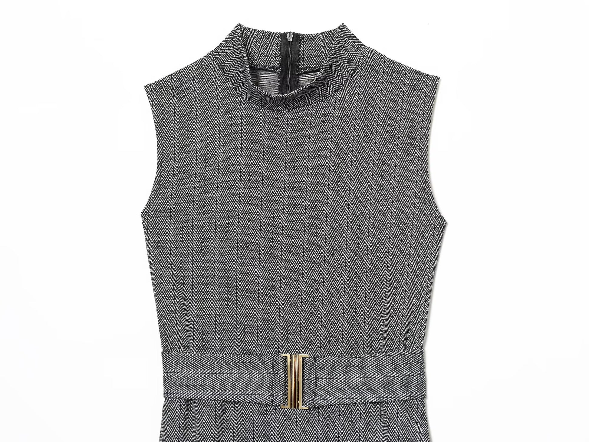 Women's New Fashion With Belt Sleeveless Twill Midi Dress