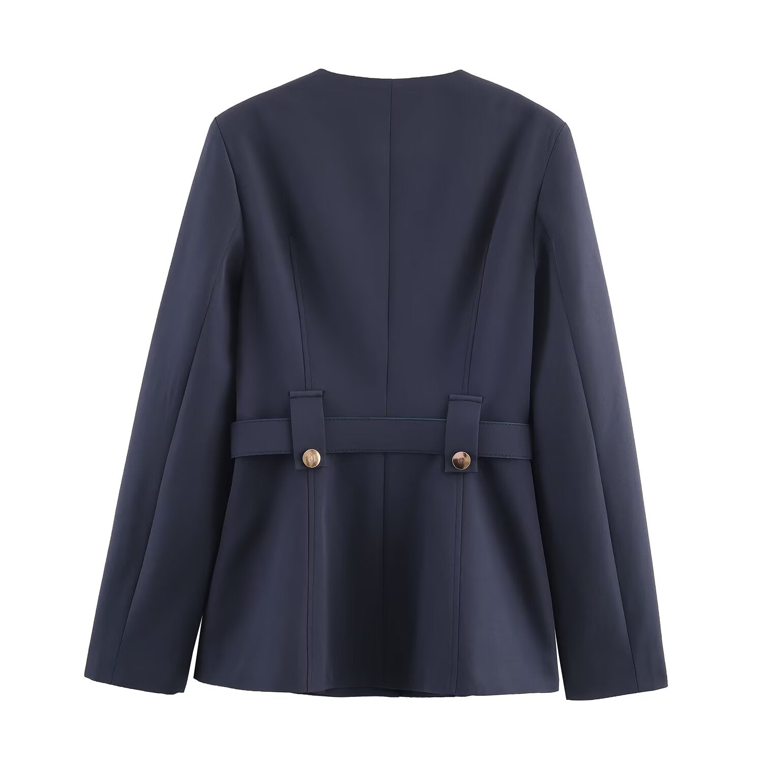 Women's new fashion with Belt slim round neck suit jacket+Pants suit