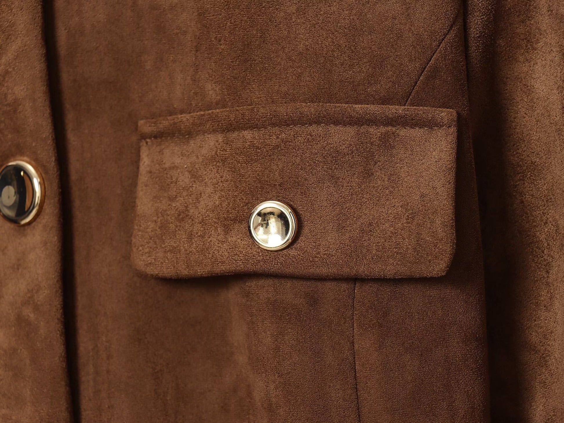 Women's new fashion with Belt suede texture effect O Neck suit jacket