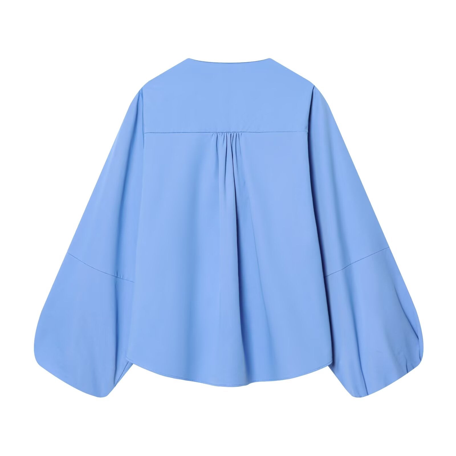 Women's O Neck zipper balloon sleeve poplin shirt