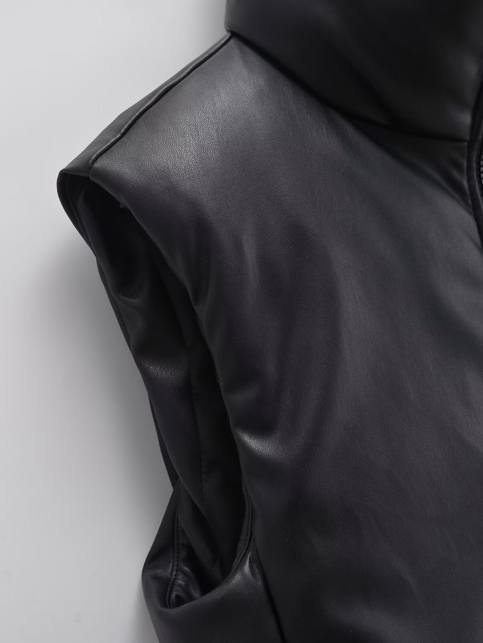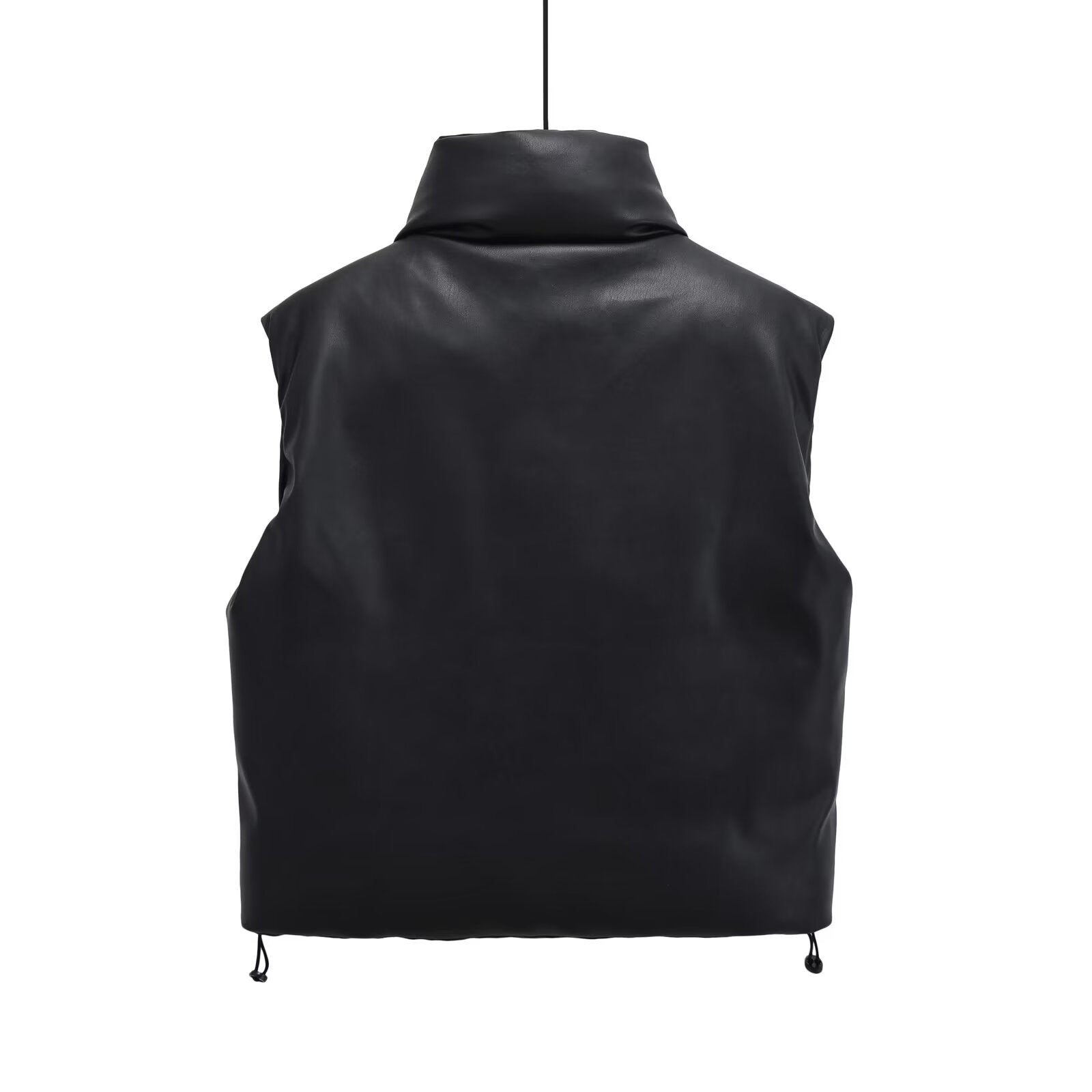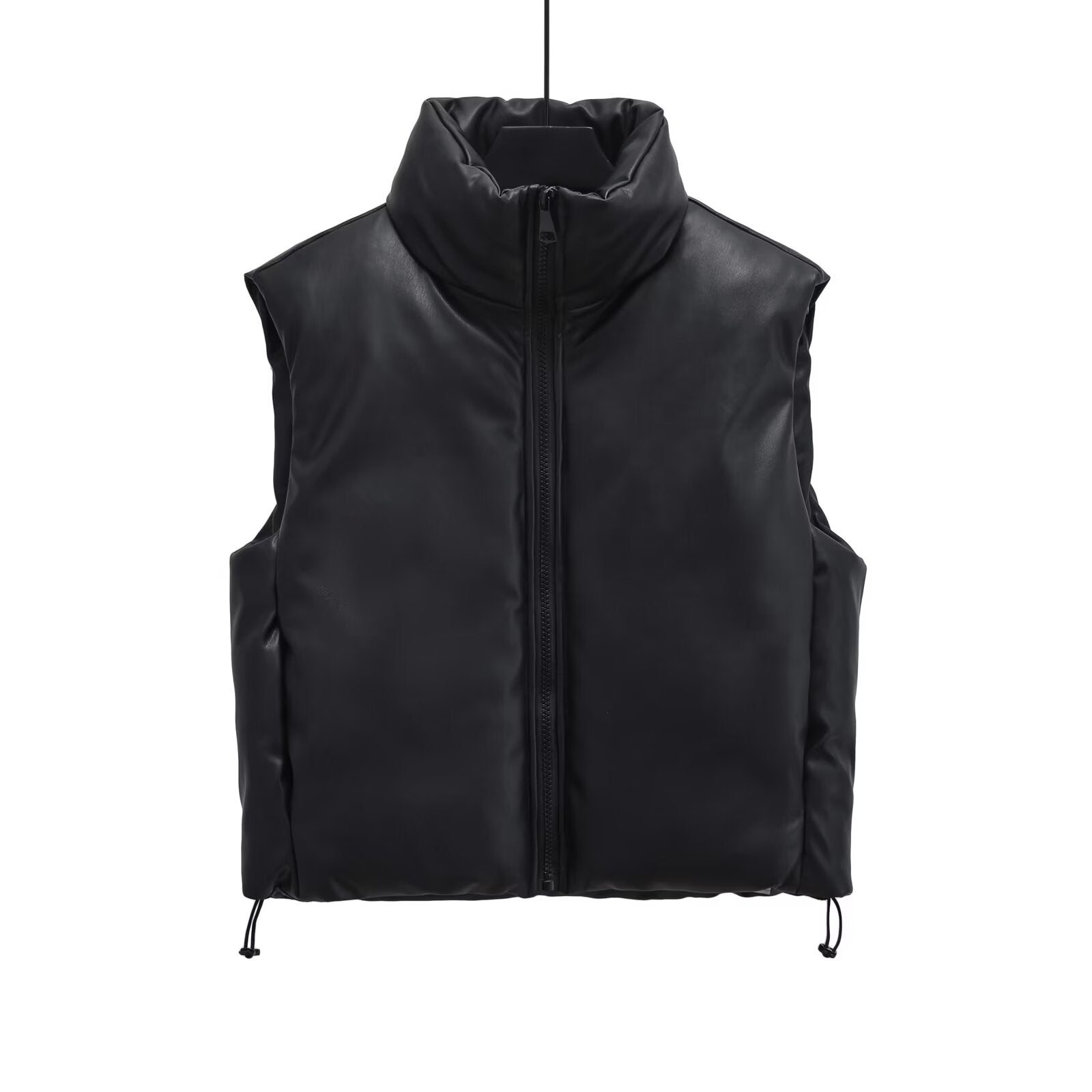 Women's short standing collar Faux Leather cotton vest