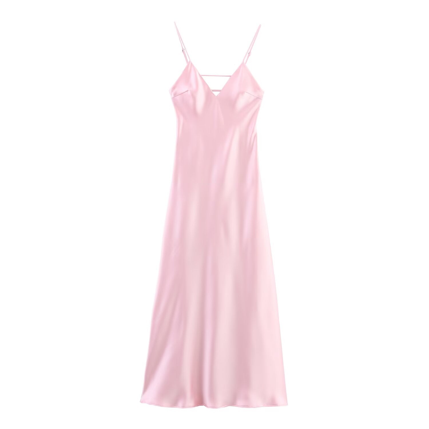 Women's summer chic Fashion multi colored satin texture suspender MIDI dress