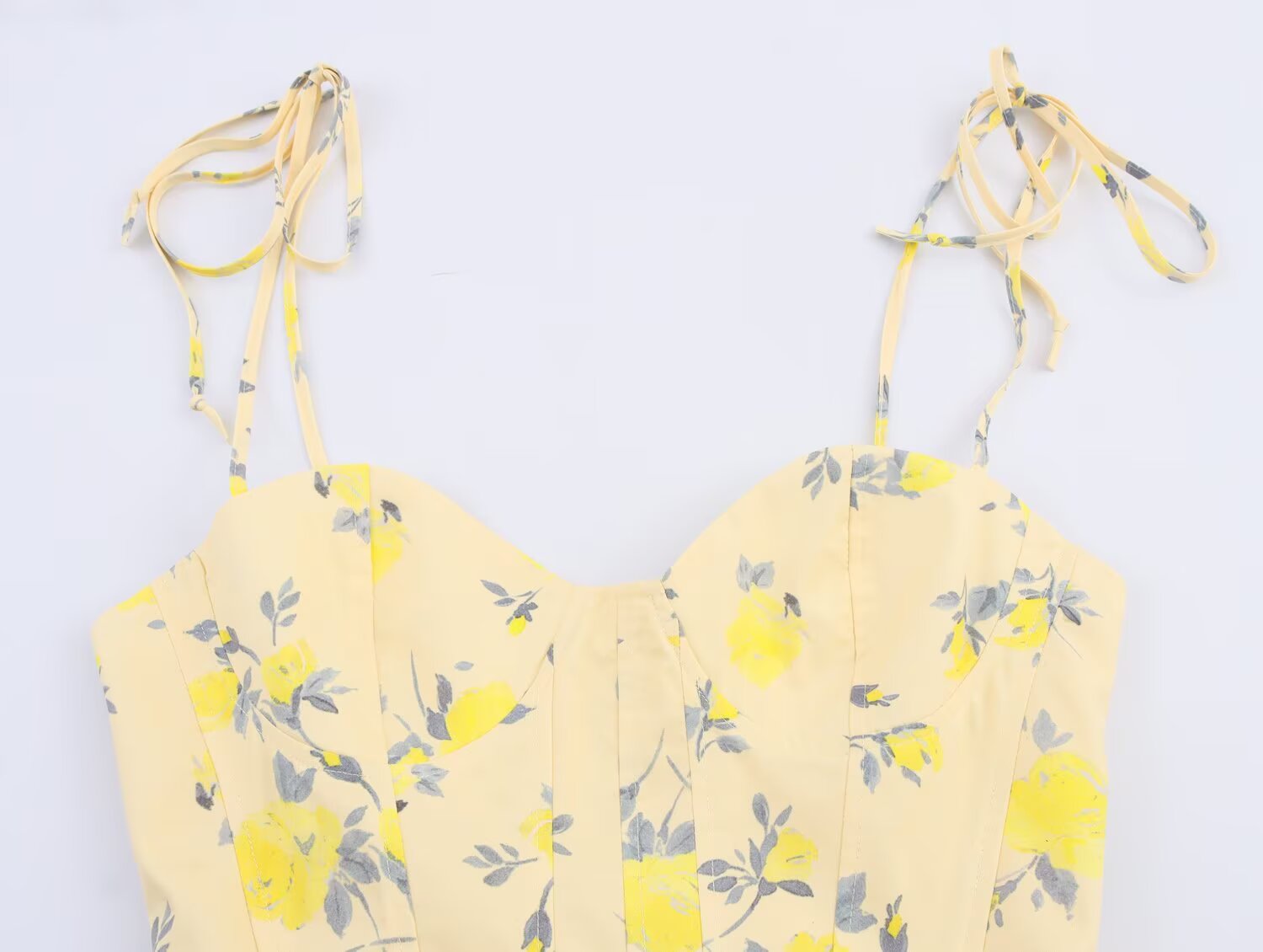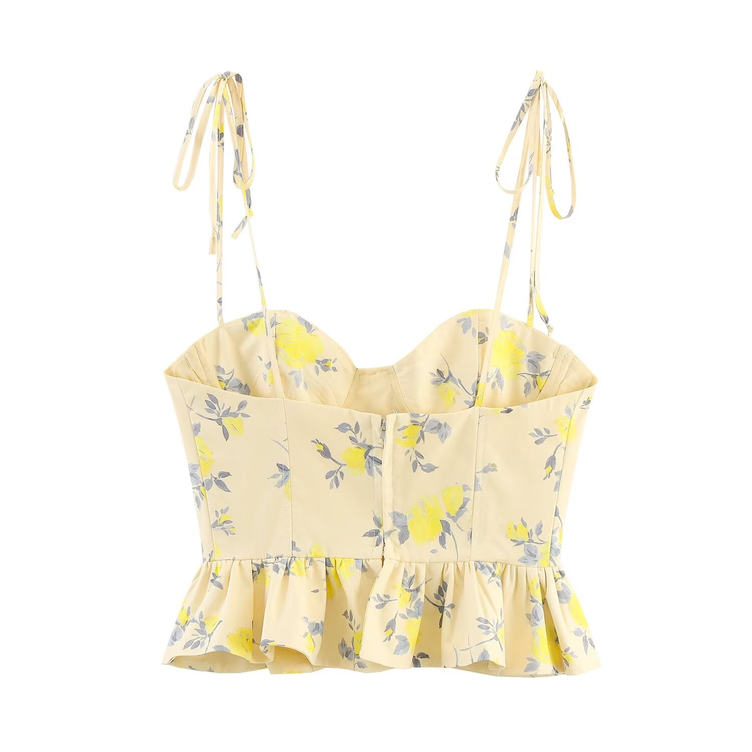 Women's Summer Fashion Flower Printed Poplin suspender Top