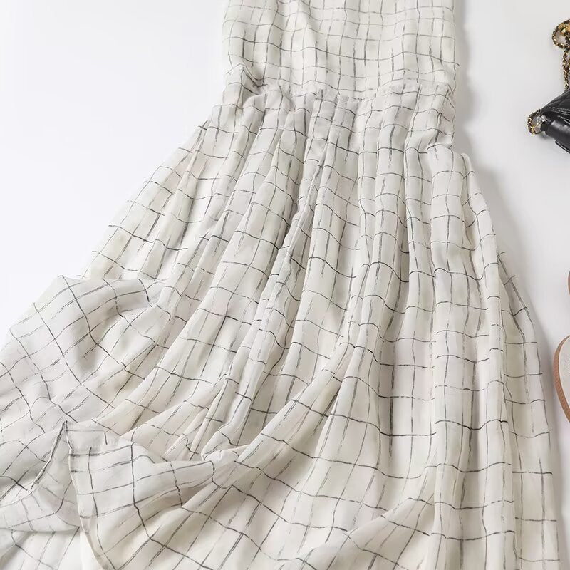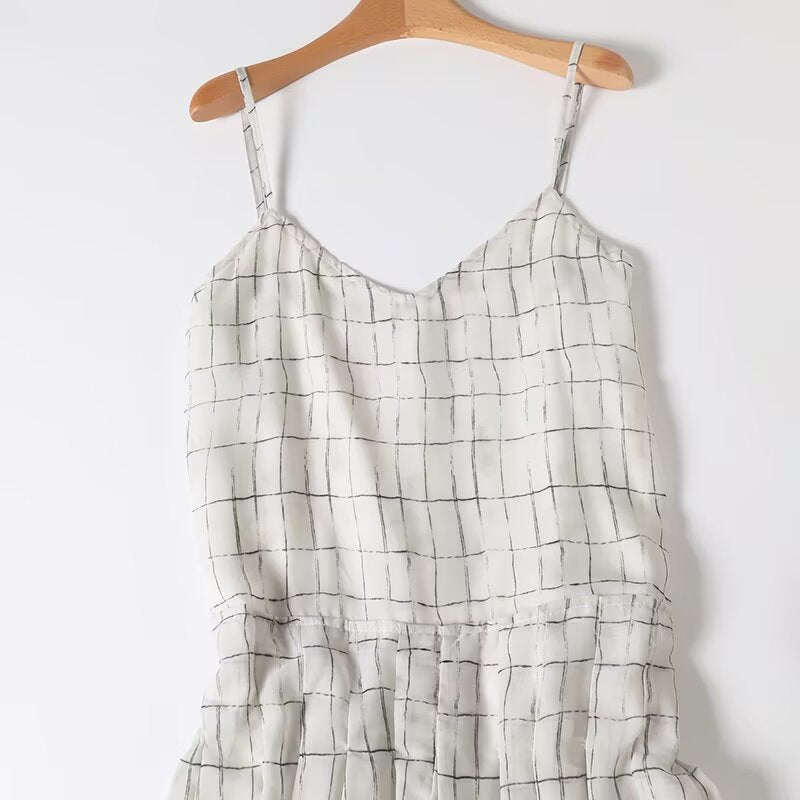 Women's summer fashion vacation style Plaid suspender MIDI dress