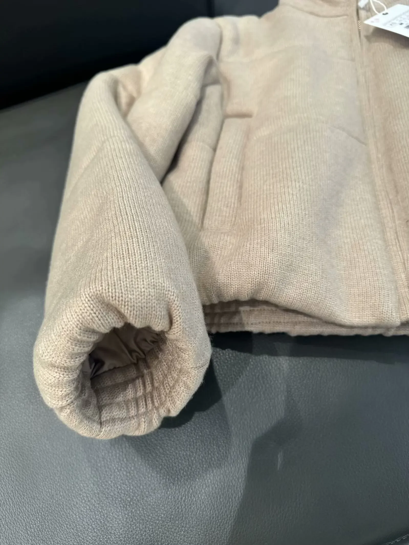 Women's winter fashion short Side pocket warm stand collar knitted cotton Coat retro long sleeved zipper women's Coat chic top