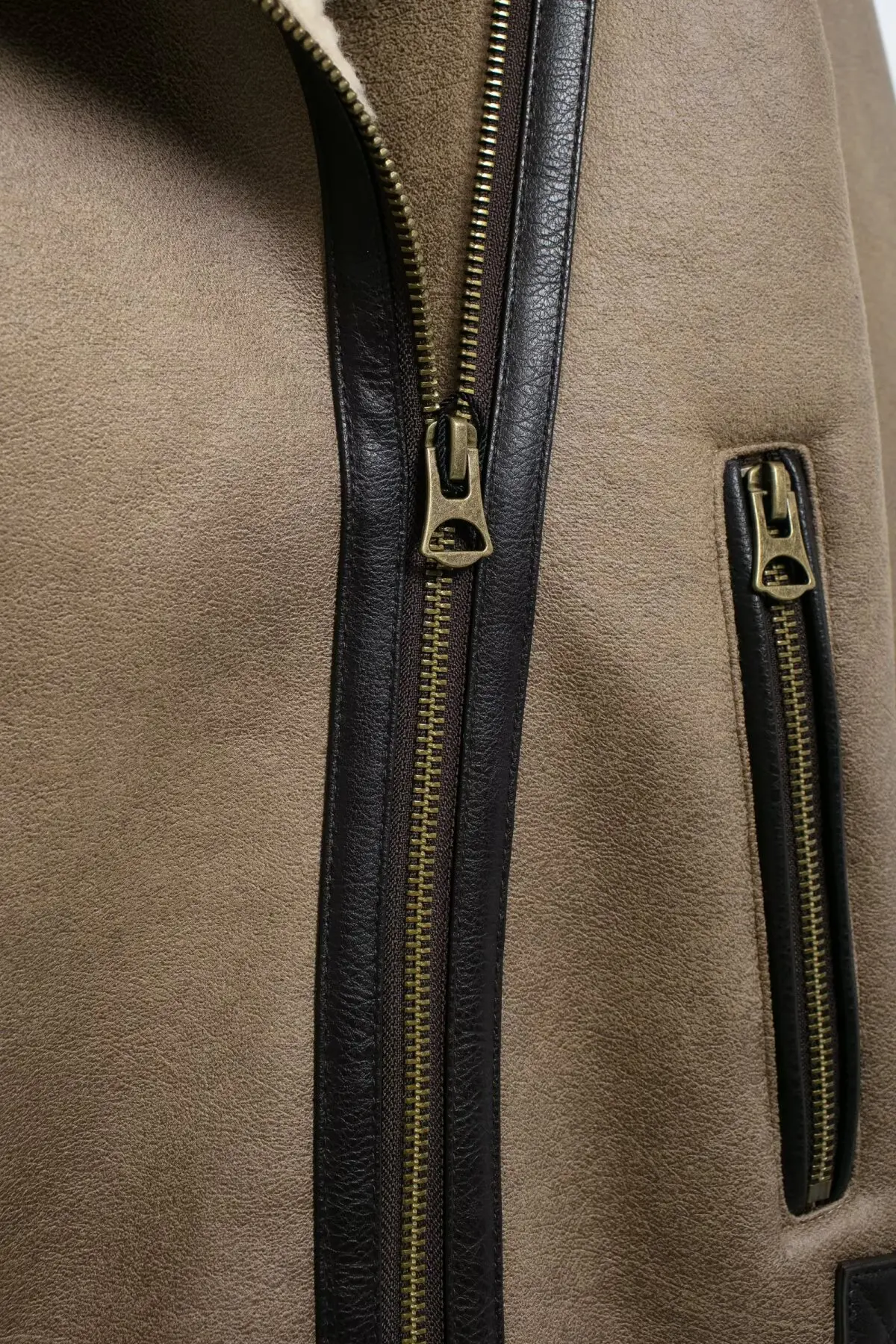 Women's winter fashion With pocket loose double-sided Fur Faux Leather jacket Coat retro long sleeved women's Coat chic top