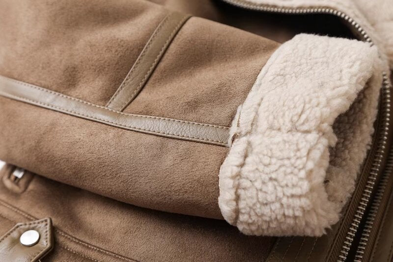 Women's with Belt double-sided Fur Faux Leather jacket Coat