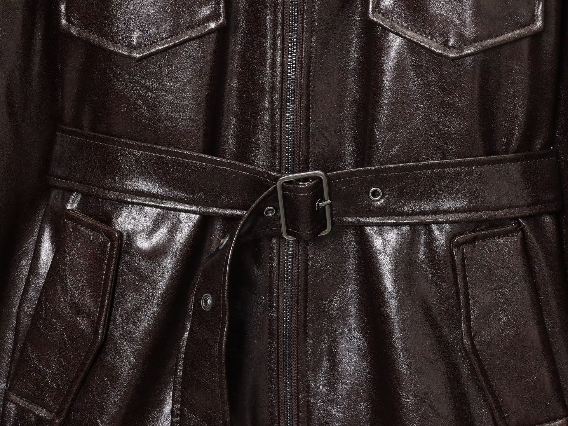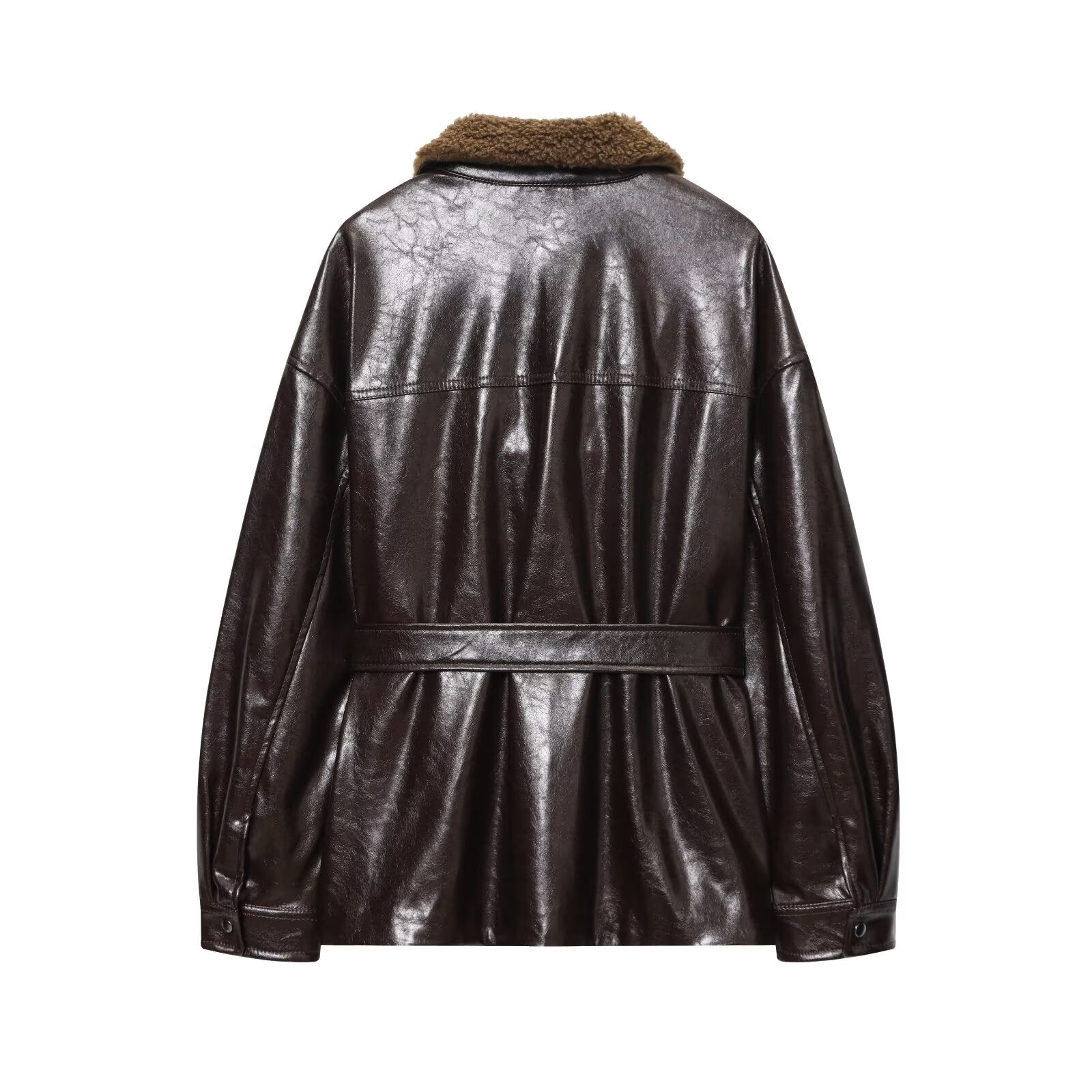 Women's with Belt Fur Faux Leather effect jacket Coat